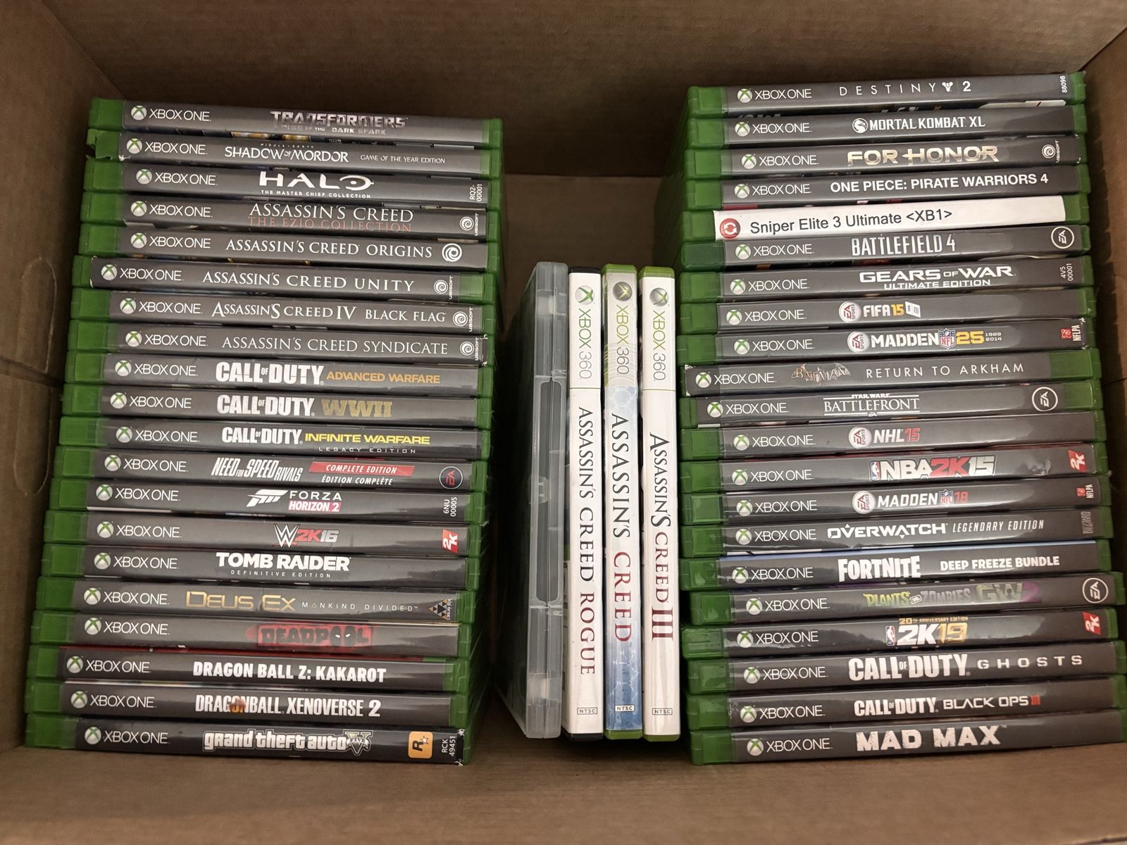 Excellent condition X Box One X with original box, 2 hand helds, power cord including 45 individual game. Sure fun for any kid to own and play with friends and family. Price to sell. Selling it for less than GameStop is charging for same collection of games including controllers and unit itself. If interested we live 1.5 miles from the Hogle Zoo just off Foothill Drive on Michigan Ave. Text or call Robert at 801-503-8364. Will entertain all offers.