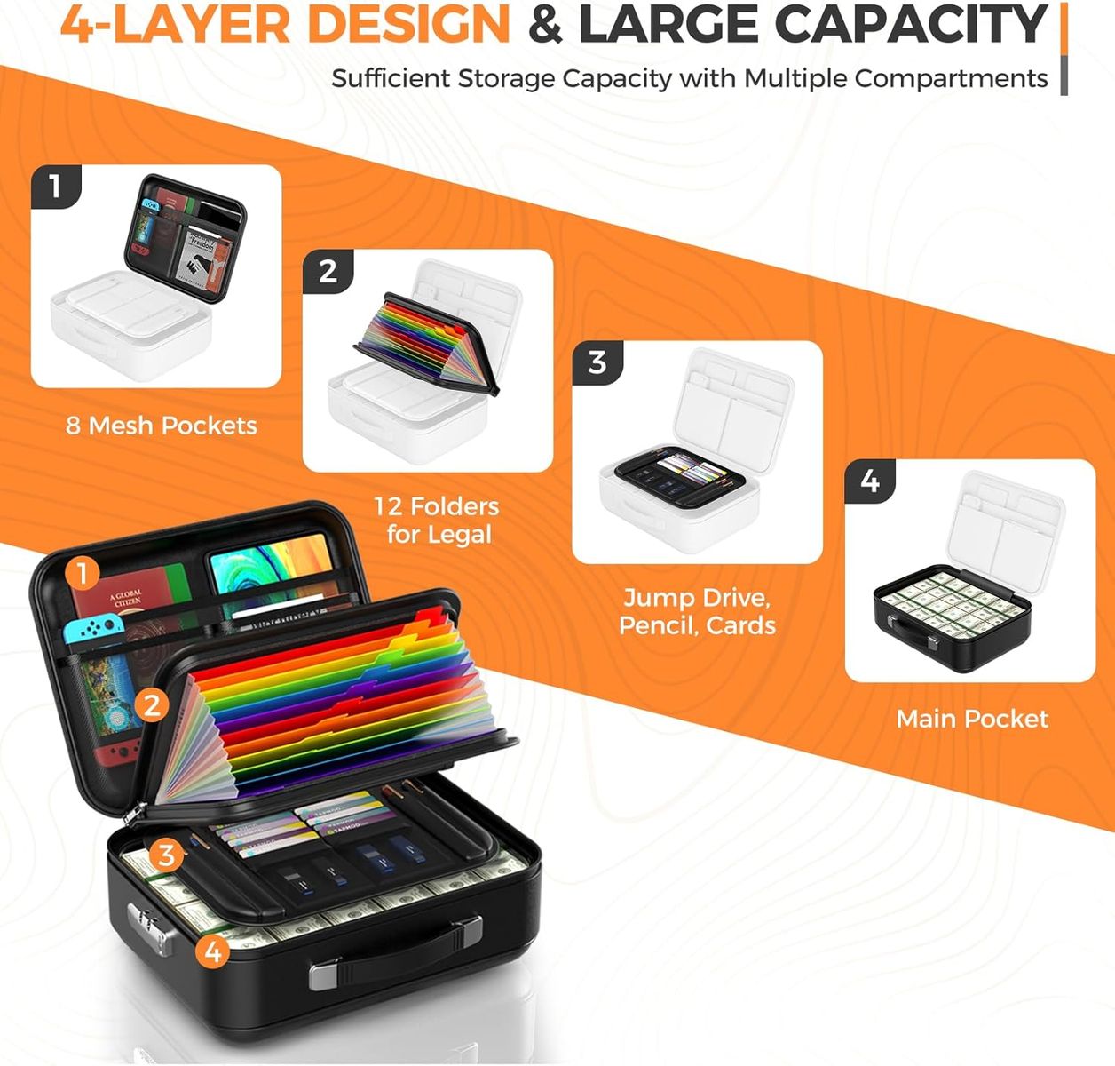 ApplePayFireproof Document Box with Combination Lock, Fireproof Water Resistant Hard Case Safe Box for Important Documents Certificates Laptop Passports