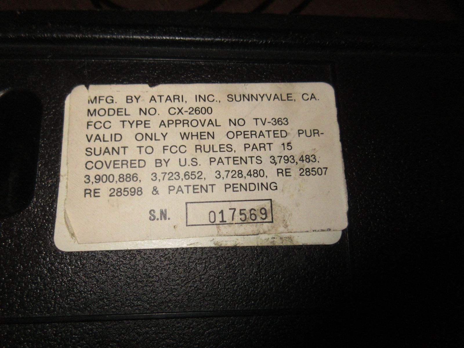 For sale: Atari 2600 "HEAVY SIXER" console. Manufactured by Atari Inc. in Sunnyvale, CA.