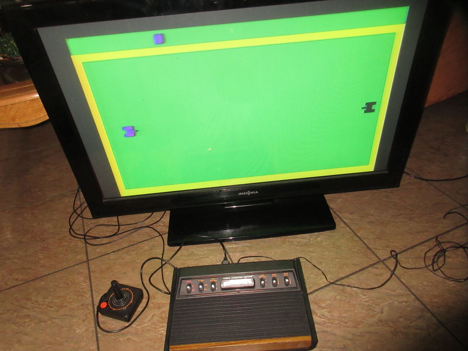 It is in good condition and working without problems. Power Supply, three games (COMBAT, HOME RUN and ATARI CIRCUS), a TV/Game swith and a joystick are included in this sale. The console can be tested in my TV.