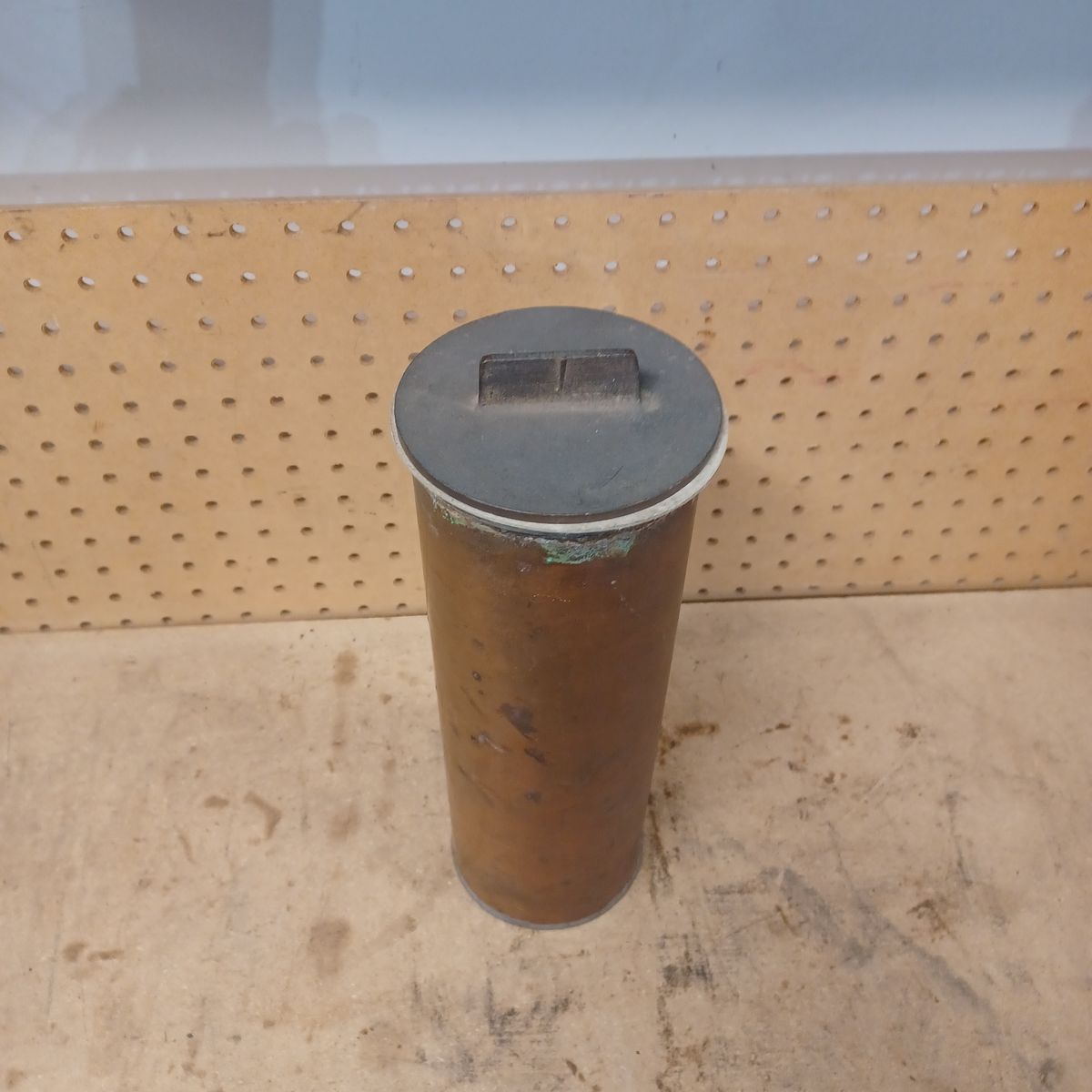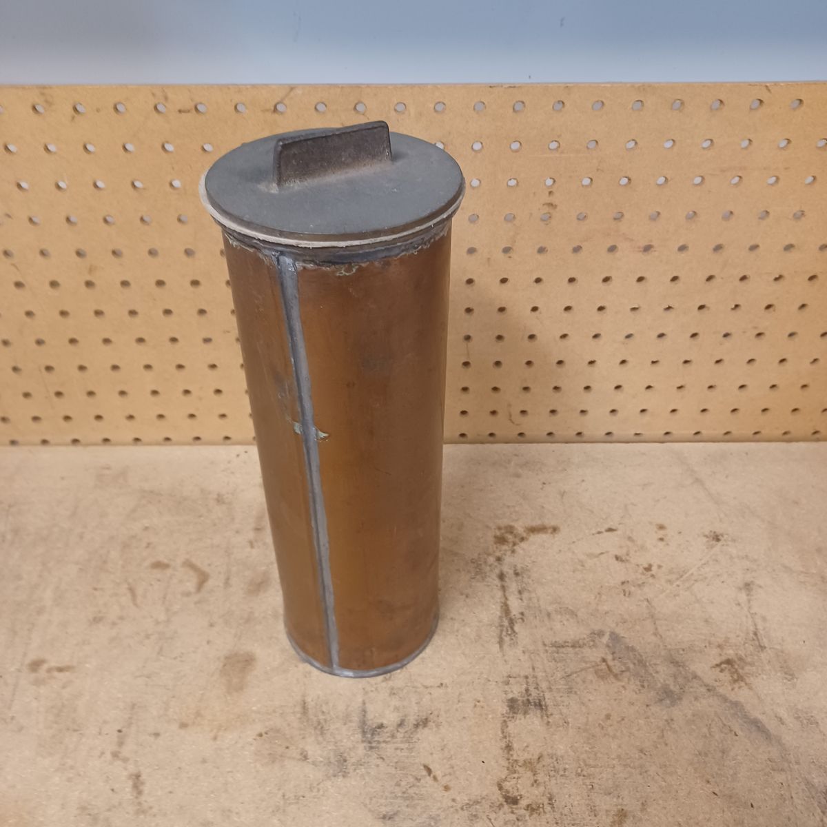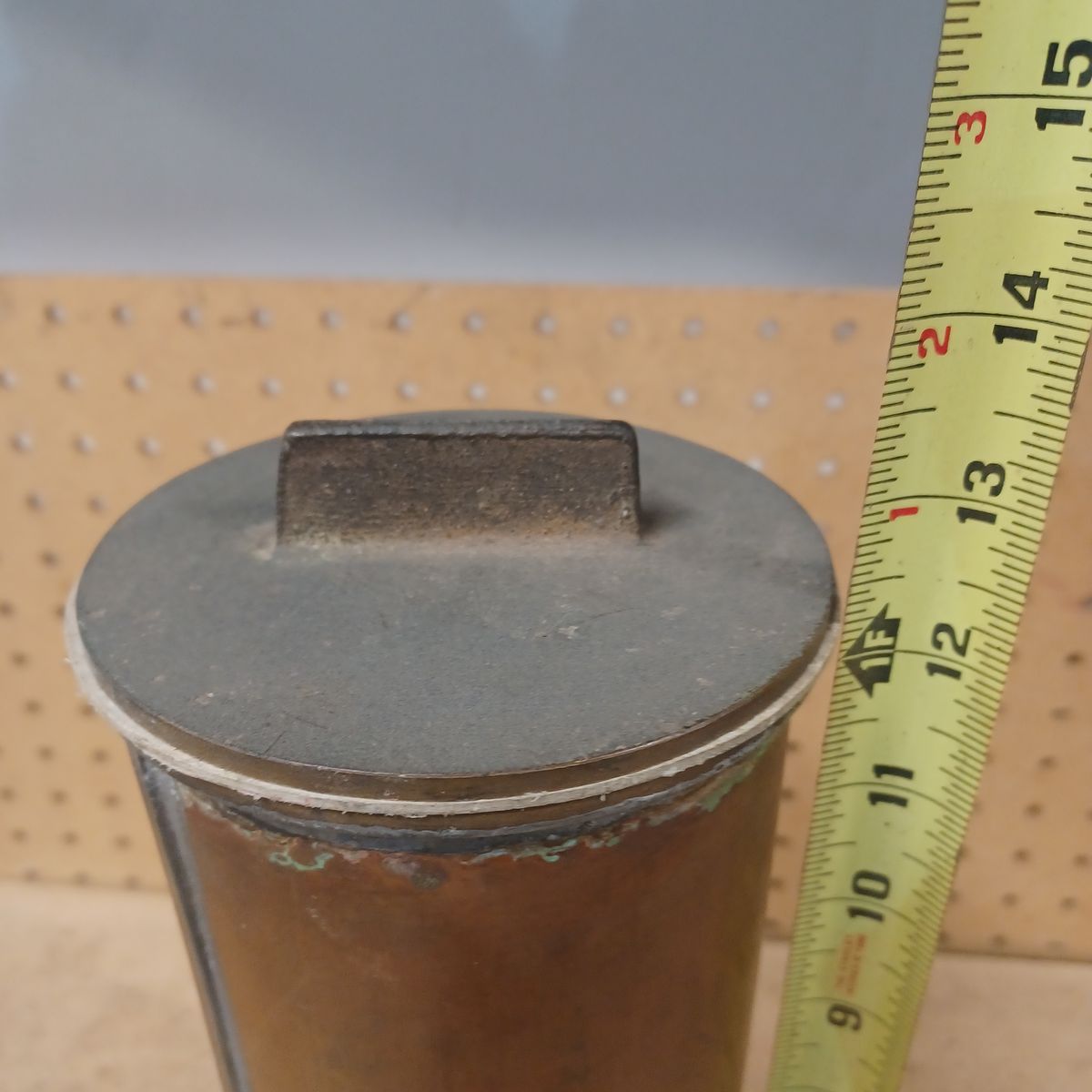 Old copper cylinder with a brass cap. Dimensions are shown. $30 dollars