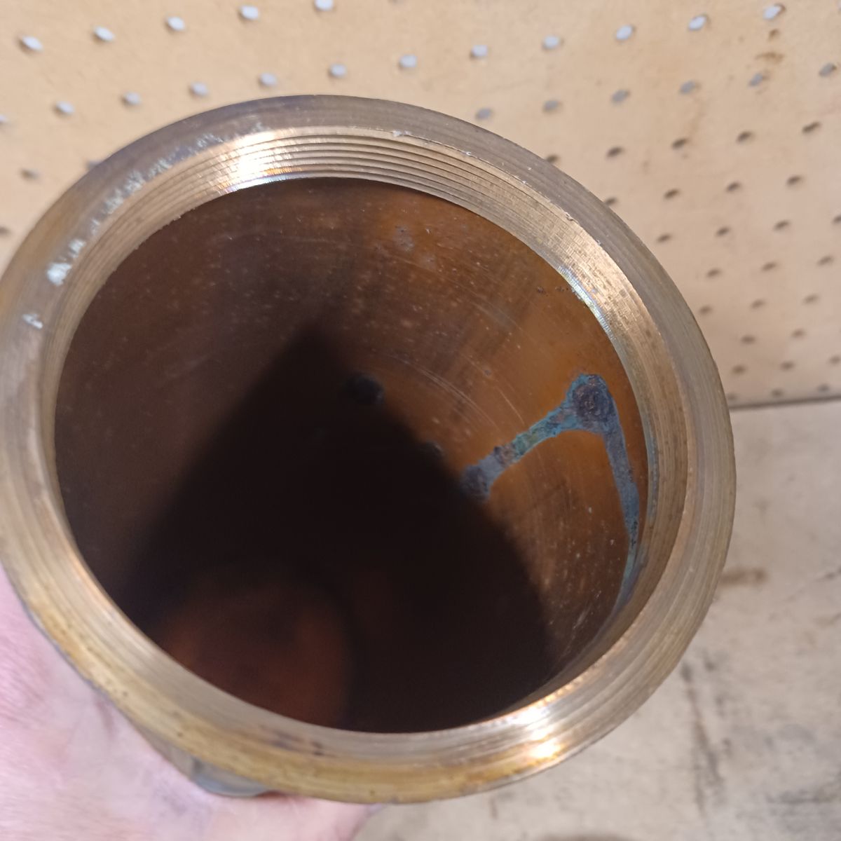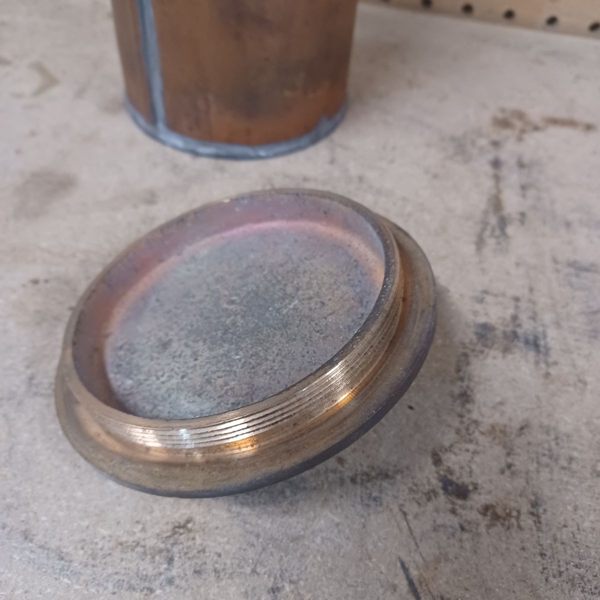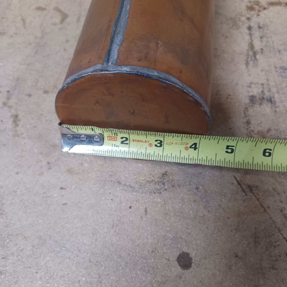 Old copper cylinder with a brass cap. Dimensions are shown. $30 dollars