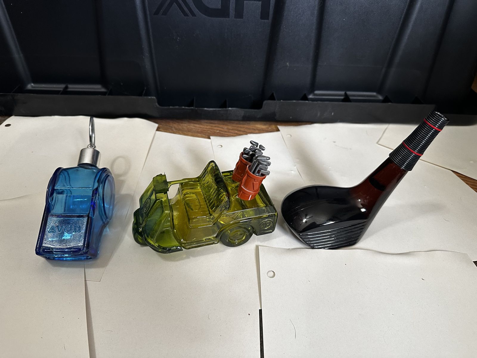 CashAppThese can be either sold in a set or idvidually. The set would make a great addition to any golf lovers office. If there is liquid in any of the bottles, they would not be safe for skin as these are approx 40 years old. If you would like to see other antique Avon items please go to my page.