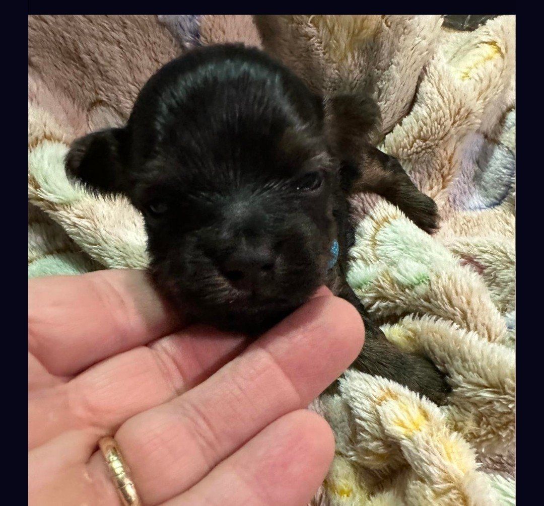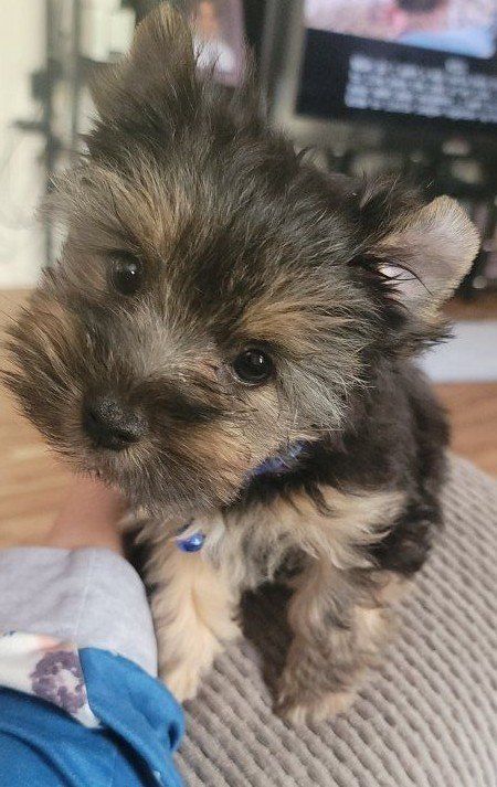 ZelleThis little guy is ready now. He is the sweetest little love. He follows you around and will just lay by your feet if you're busy doing other things. He is mostly housebroken. He sleeps through the night without peeing and during the day if kept on a schedule won't have any accidents. He's had 3 sets of shots, only needs 2 more. His dad is a chocolate yorkie His mom a beautiful dark colored yorkie. His parents are both 4 lbs. I'm asking $1700 as pet only or $2500 with akc papers.