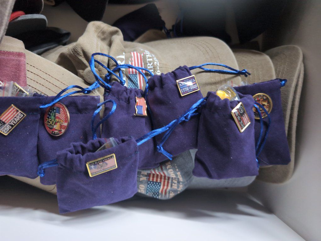 hats flags shirts pins & coins n more pins from 2 to 10, flags 4 to 25, shirts (many to choose) 15-20, hats 10-20, metal wall art pics all sorts I stuff. Phil in Lehi 8017225800 text I can send more pics