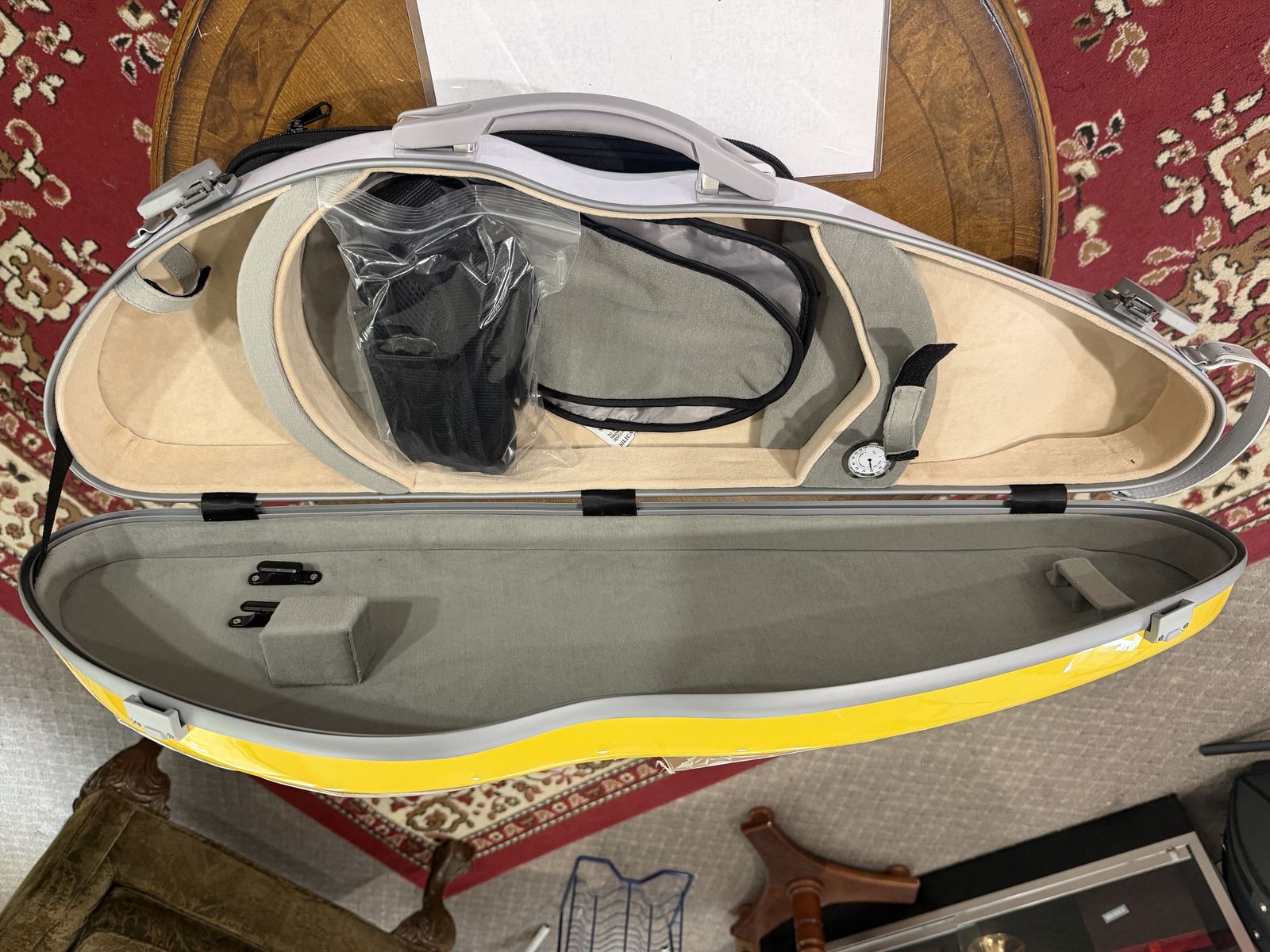 GooglePayThis slender, shaped violin case has a strong and sturdy fiberglass shell and very well-padded interior. It's unique design and colorful exterior makes it a popular case among violinists.This case is an absolutely excellent choice for violinists who are looking for an affordable, colorful, and sturdy option to protect their beloved instruments. Top Reasons To Get This Case Colorful tough fiberglass shell Protective suspension system Accessory pockets Comfortable padded handle