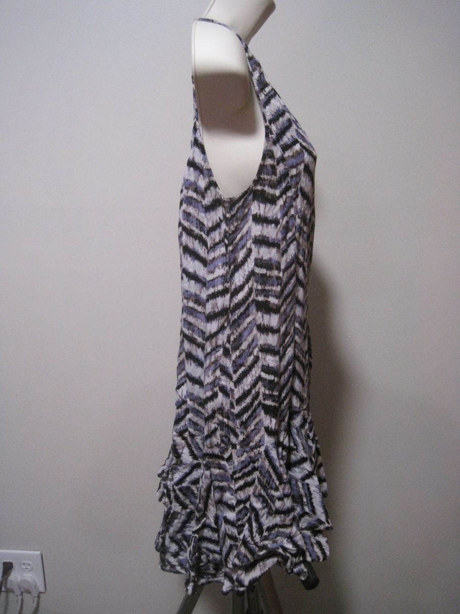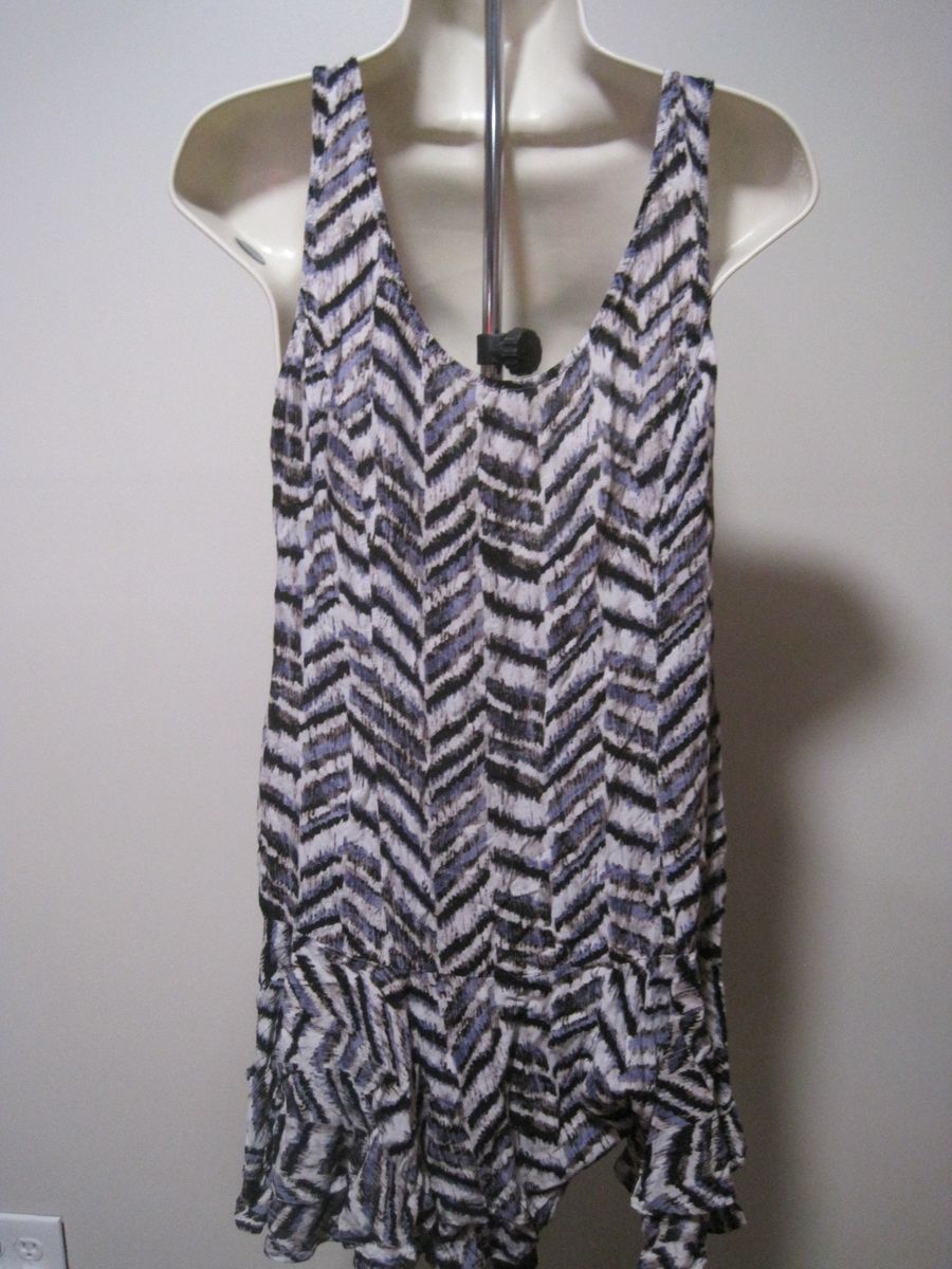 This Free People Size 8 Chevron Print Sleeveless Dress in Purple features a layered hem and a zipper front closure, making it perfect for a party or casual occasion. The dress has a scoop neck and a shift style, with a short dress length and a regular size fit. It is machine washable and accented with layers and a zipper detail, adding a stylish touch to the design. Made by Free People, this dress is a fashionable option for the summer season, showcasing a trendy Chevron pattern in a chic purple color.