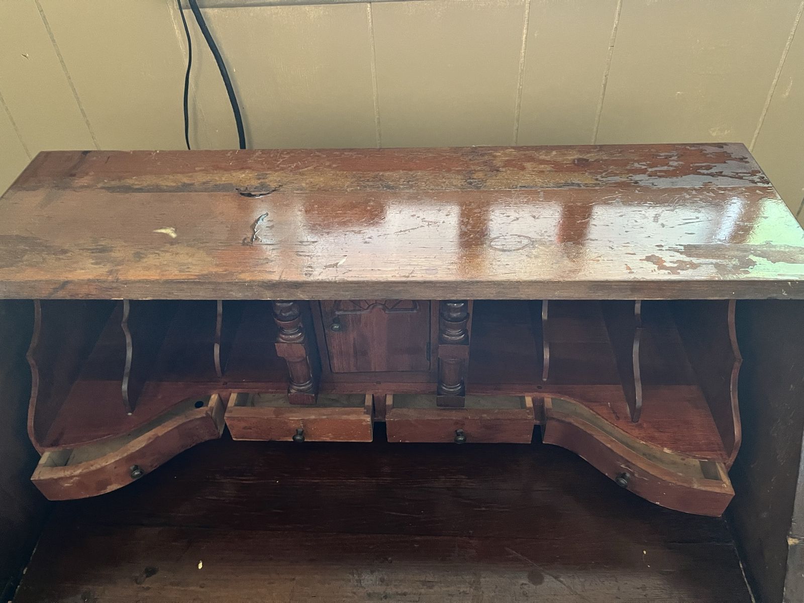 VenmoSorry I don’t have an exact age on this desk. But I know it’s an antique. It does have some scratches on it but other than that it’s in great condition. Must be able to haul away yourself.