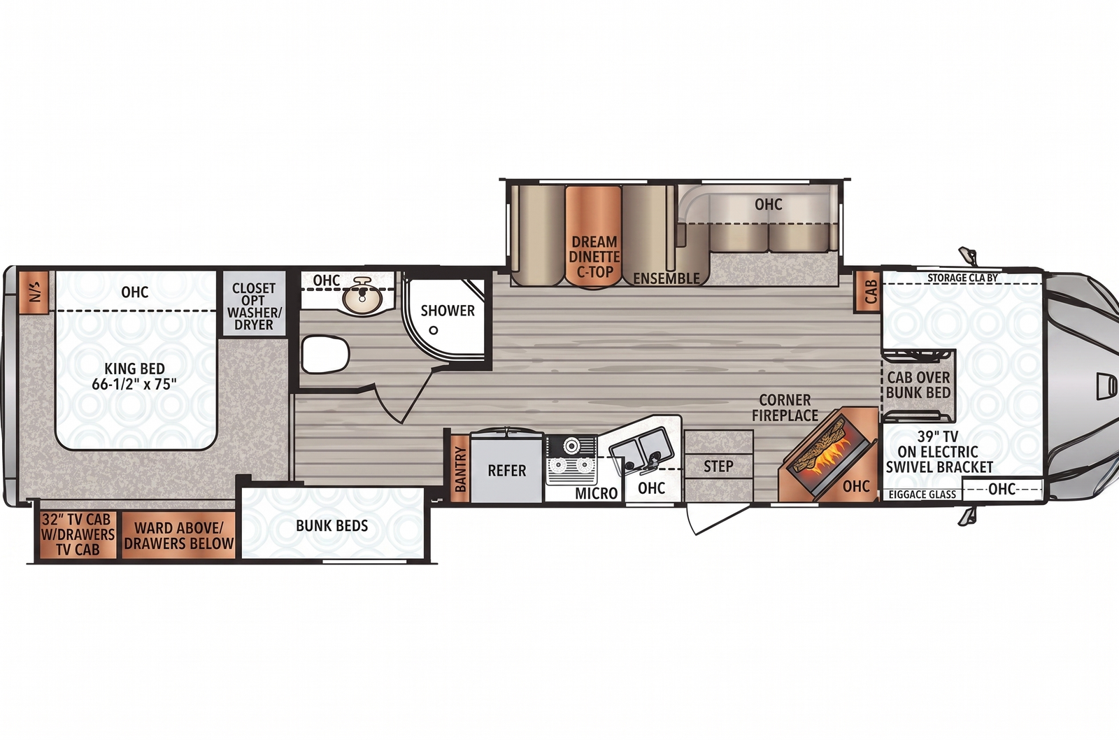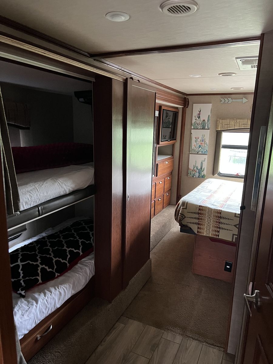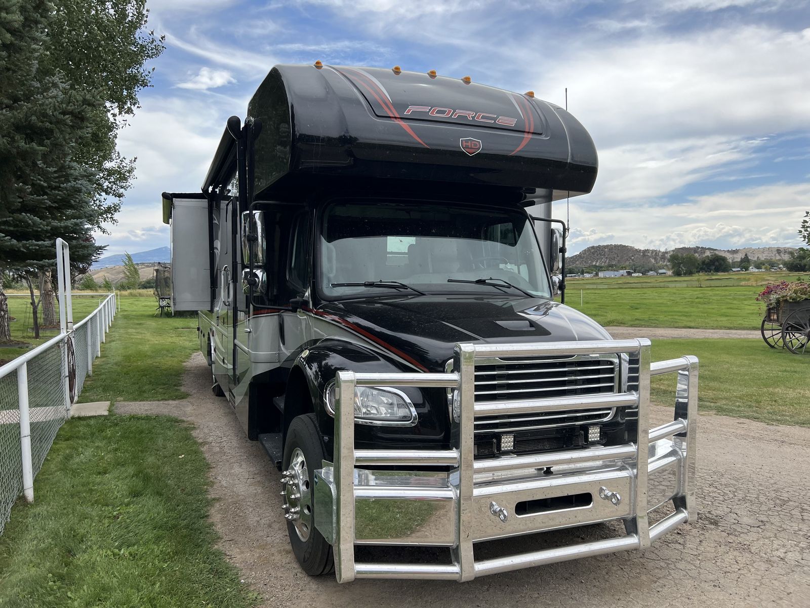 2016 Dynamax Force HD 37BH Bunkhouse built on the heavy-duty Freightliner M2-106 chassis. Only 53,746 miles on the Cummins ISL 8.9L Diesel (350HP / 1,000 lb-ft torque).