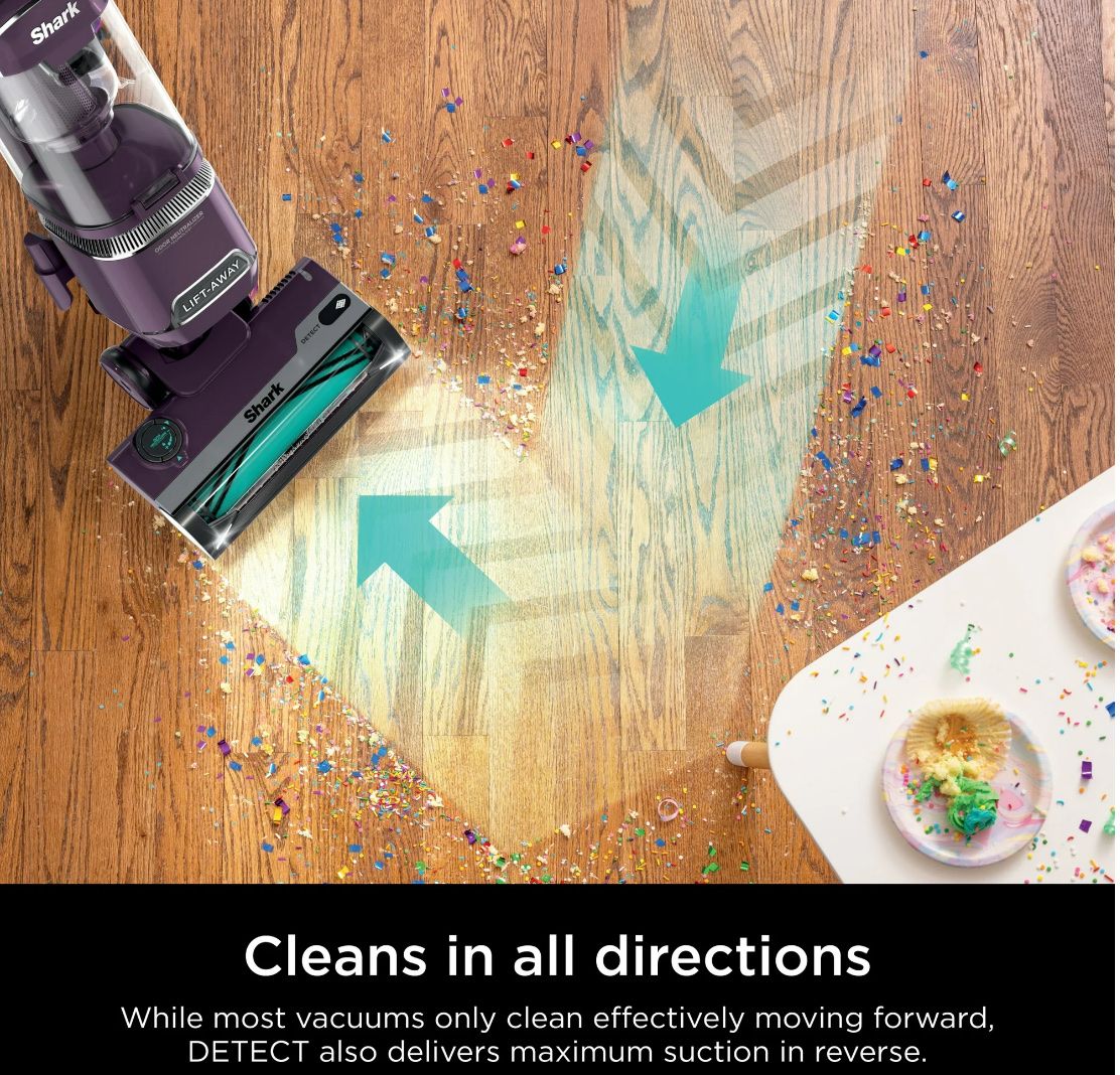 Automatically recognizes the direction you are vacuuming and directs its powerful suction forward or reverse for maximum cleaning in both directions.