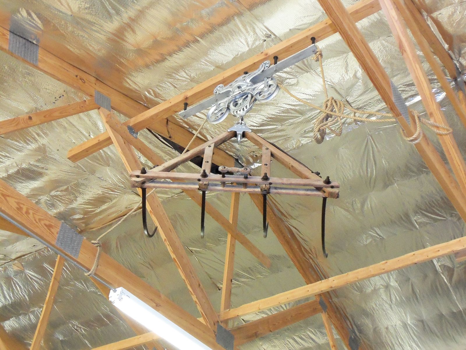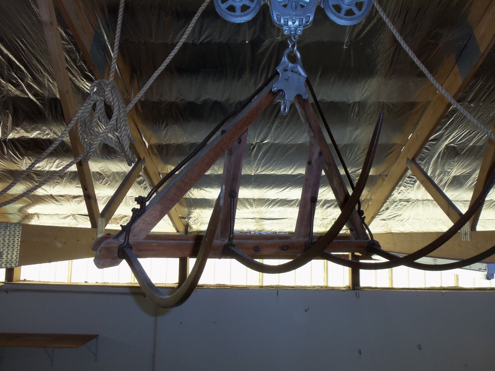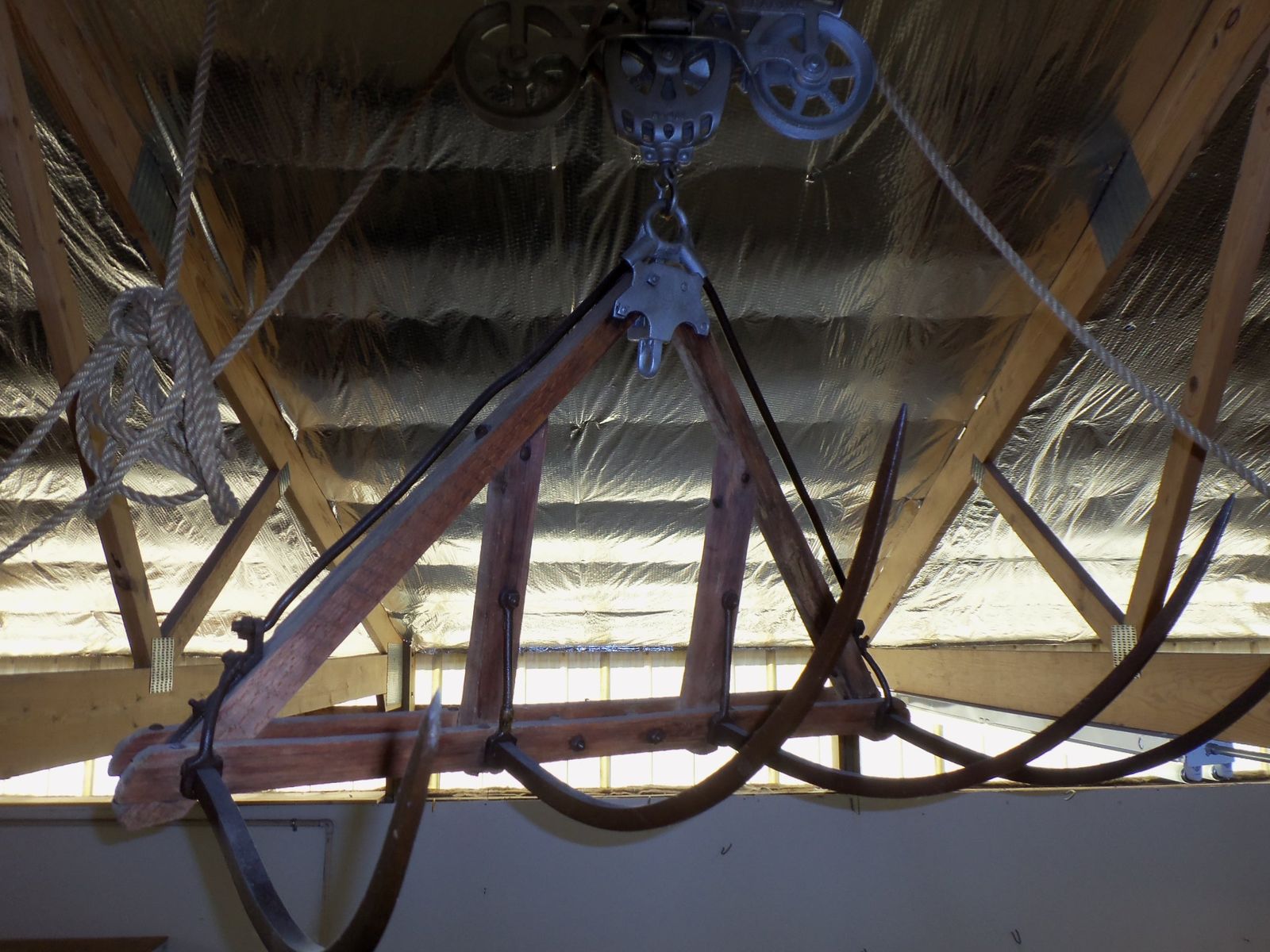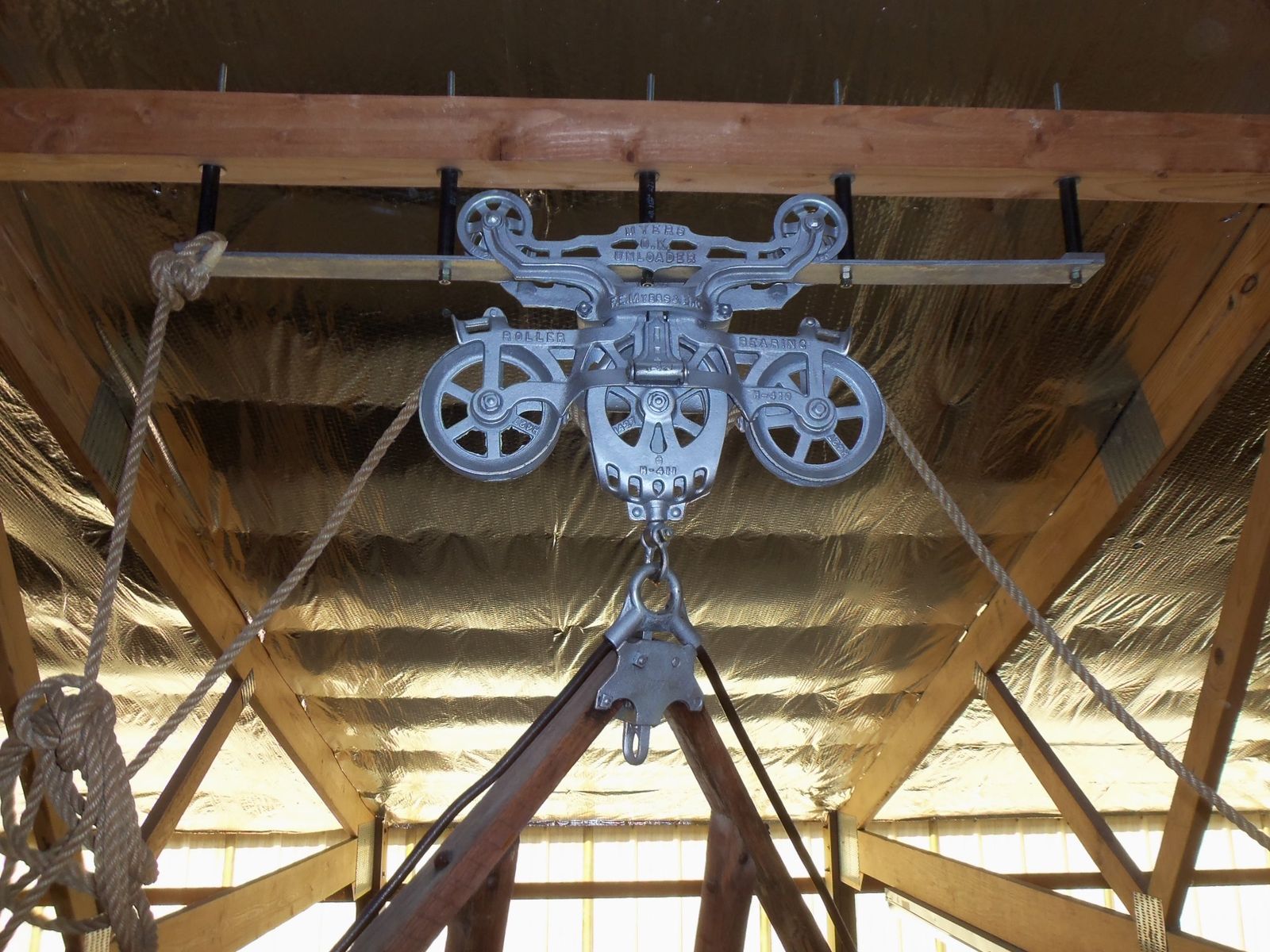 Antique Jackson Fork and Trolley in working condition. $575/Offer.. If you are serious it will take me a couple of days to get it down. The support it is hanging from is not included.