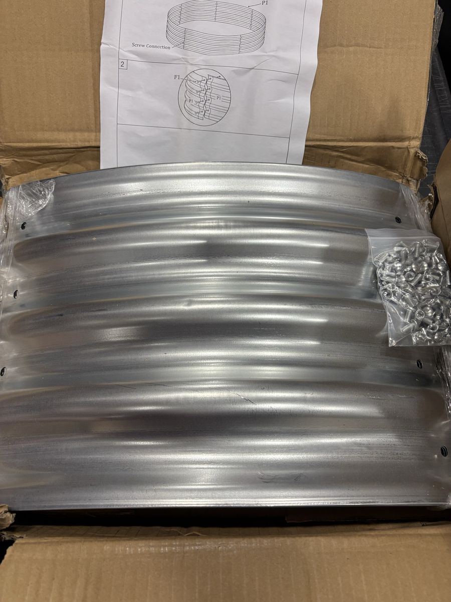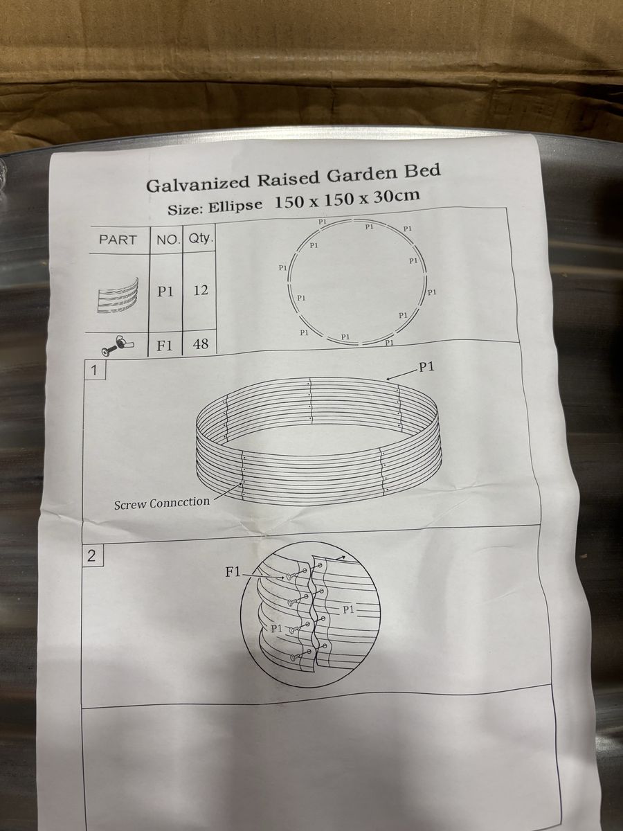 ZelleGalvanized raised garden bed. 5 feet circumference by 1 foot tall. I have 5 available.