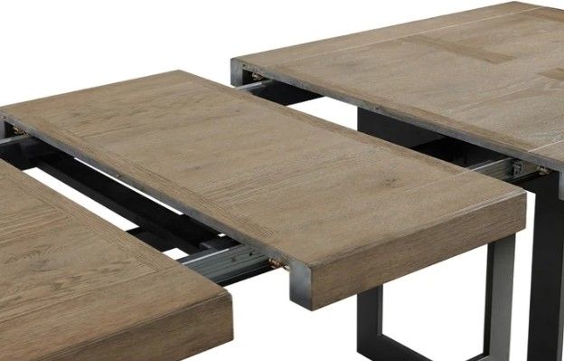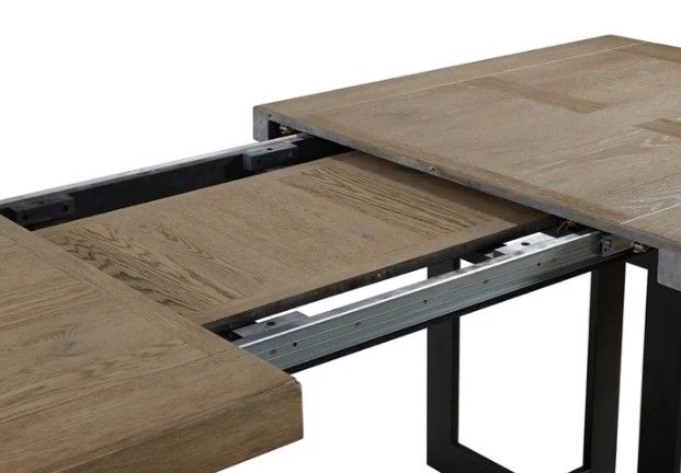 Key Features: ️ Stylish urban rustic dune brown finish with wire-brushed detail ️ Durable rubberwood & poplar solids with oak veneer ️ 18” self-storing leaf with smooth cable-driven metal slides ️ Strong metal table base for a modern industrial look ️ Comfortable gray upholstered seating (chairs + bench) ️ Pre-assembled chairs with sturdy metal bases ️ Includes coordinating bench for versatile seating