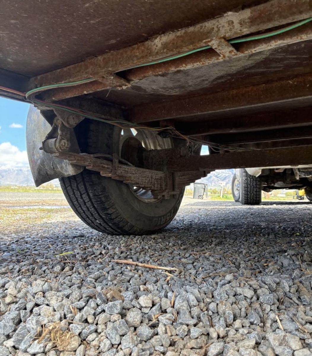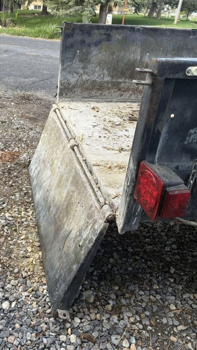 4’x8’ utility trailer with 18” walls, back one drops down to unload, heavy duty axle. 2” hitch and new wiring harness and lights. Rated for 2 and a half tons.