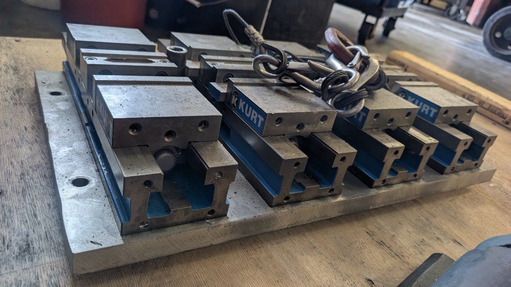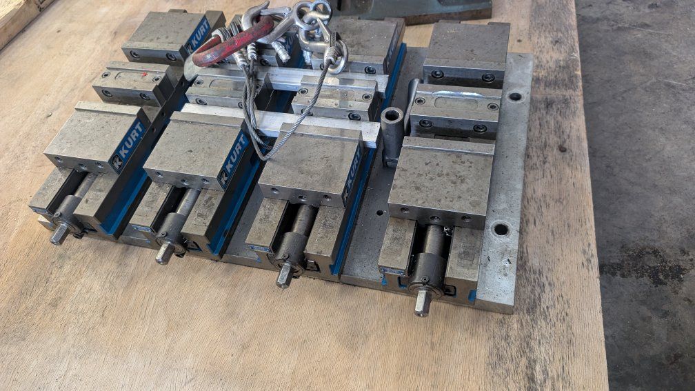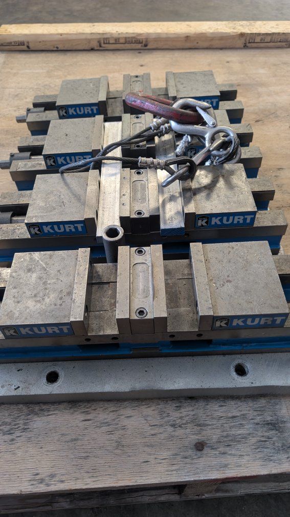 CashApp4 pack of 4" Kurt double locking vice for CNC Mill work. These vices were used for a project and have been sitting in our shop for a long time. They work great, they lock great, we just don't use them anymore.