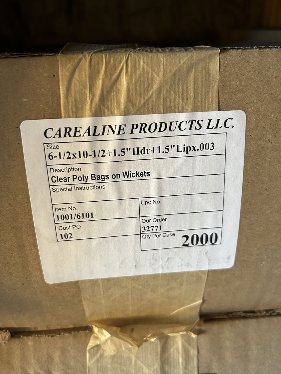ZelleDISCOUNTED overstock poly packaging bags. 2000/box. 11 boxes available. $50/box. (80% discount) Make offer for all 11 boxes together. Will not split open a box.