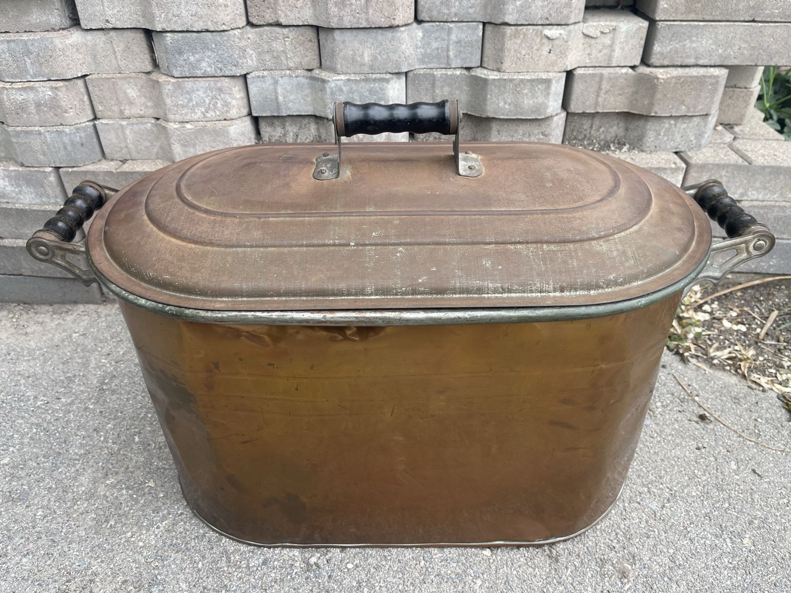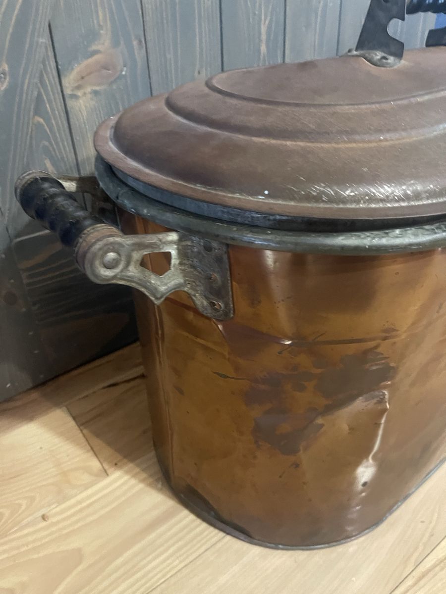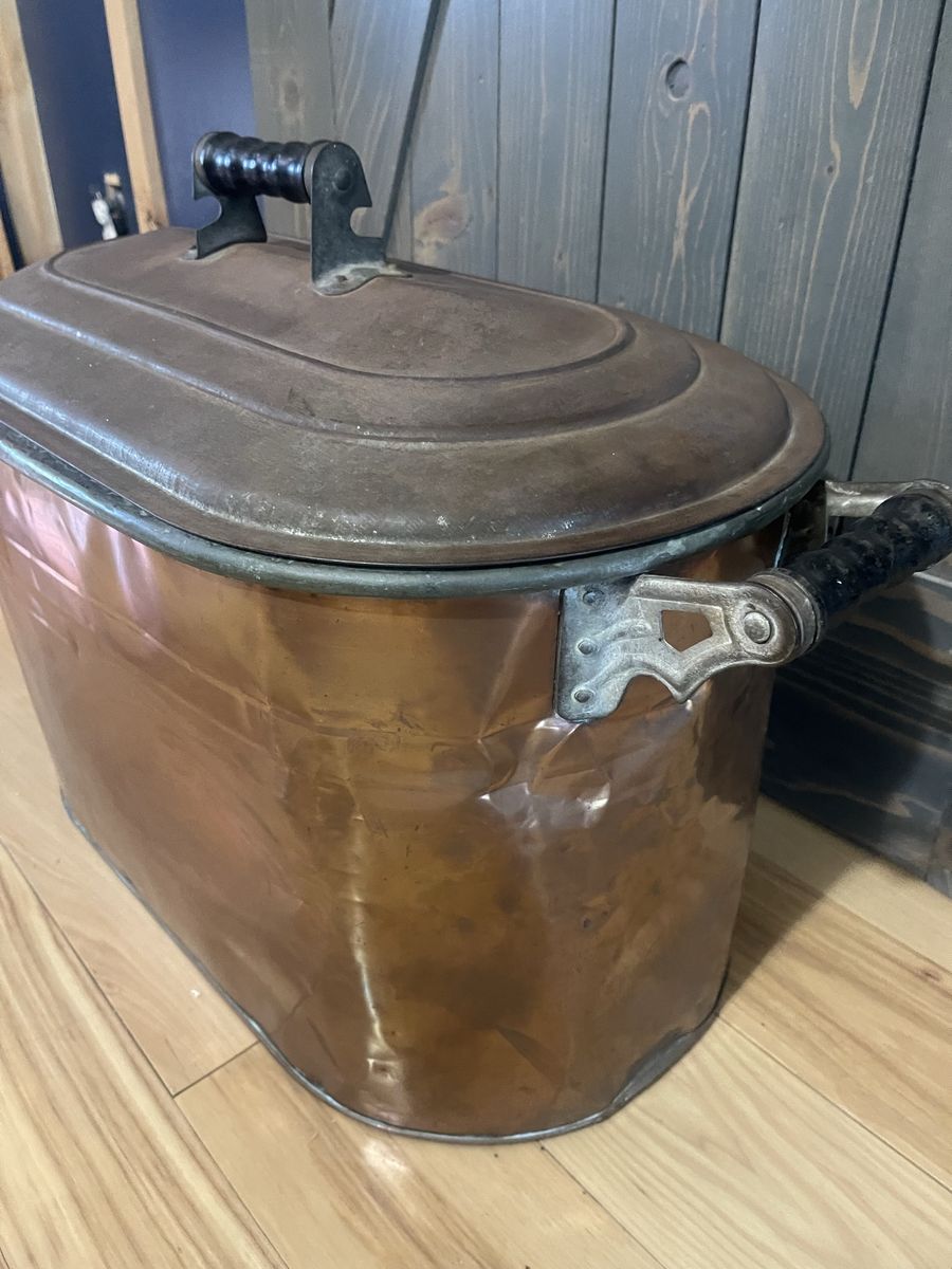 Antique copper wash boiler about 23” long 13” tall and 13” wide