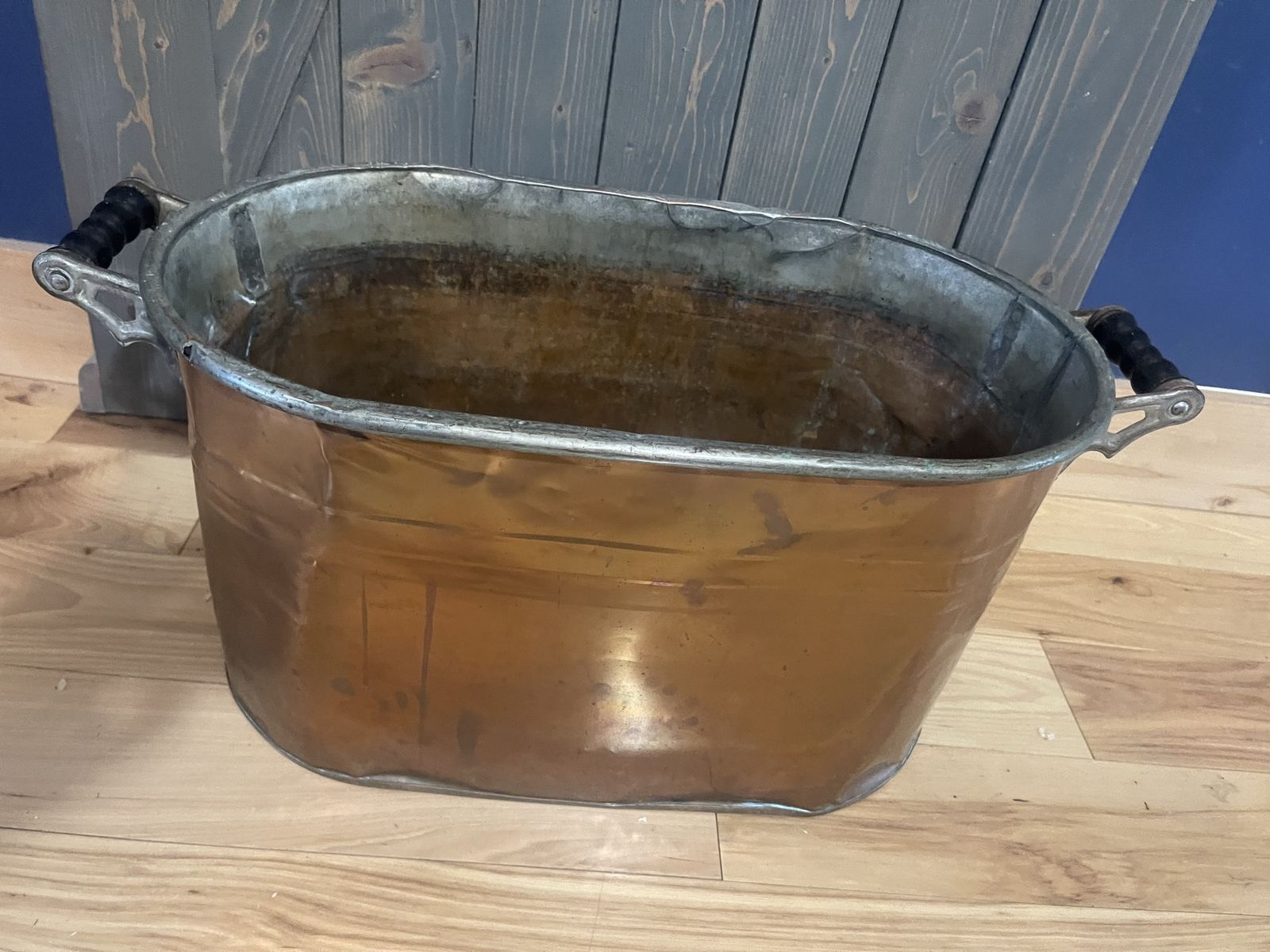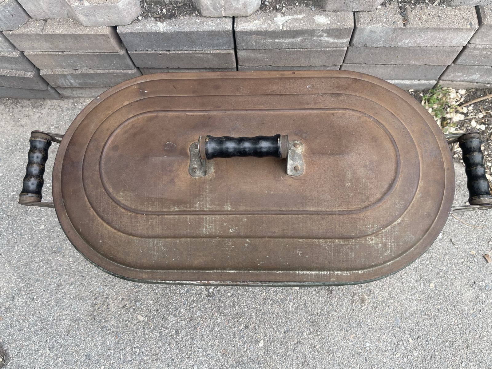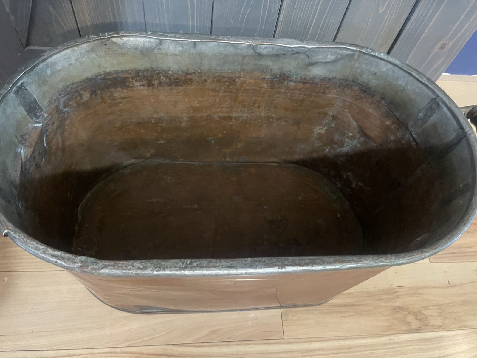 Antique copper wash boiler about 23” long 13” tall and 13” wide