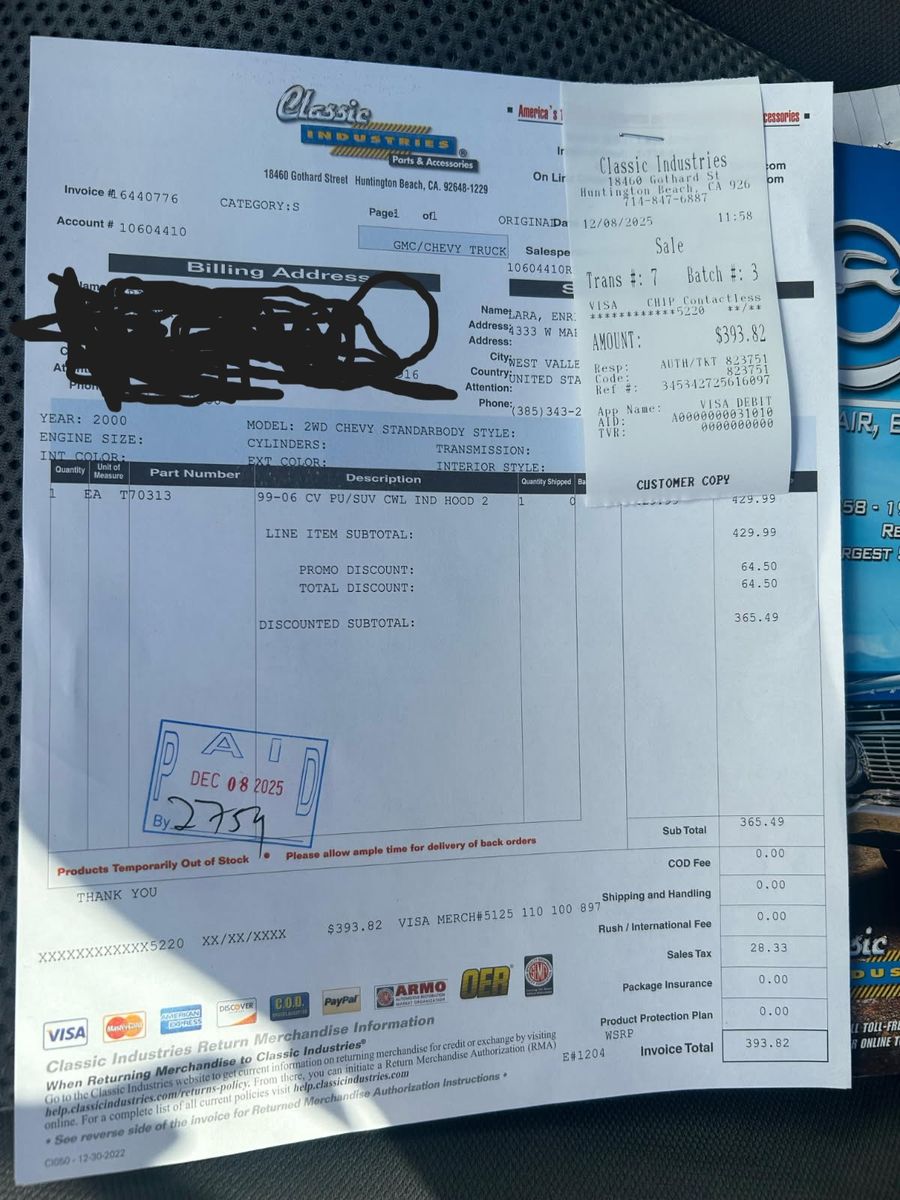 CashAppBought car hood and painted it black only to realize it didnt fit so I couldnt return it. I spent $900 buying the hood, painting it, and getting it shipped here. So please give me a best offer I am starting at $500