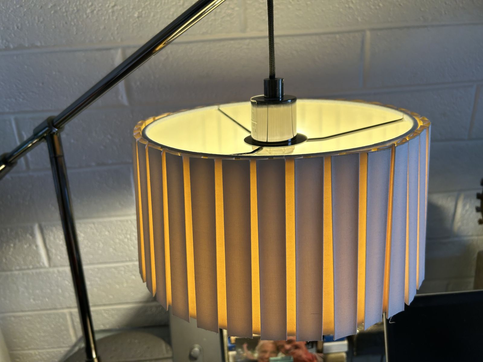 PayPalSleek, architectural task lamp from West Elm with a solid steel base and fully adjustable arm. A balance of function and warmth—the pleated shade diffuses light into a soft ambient glow while still being practical for reading or desk work.