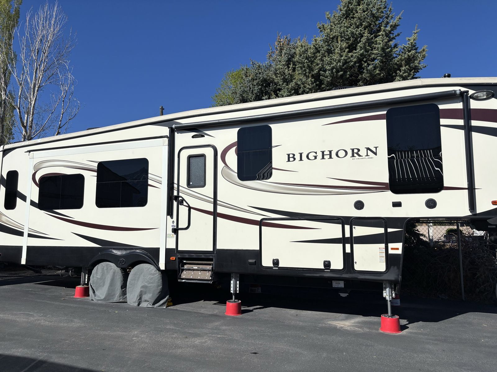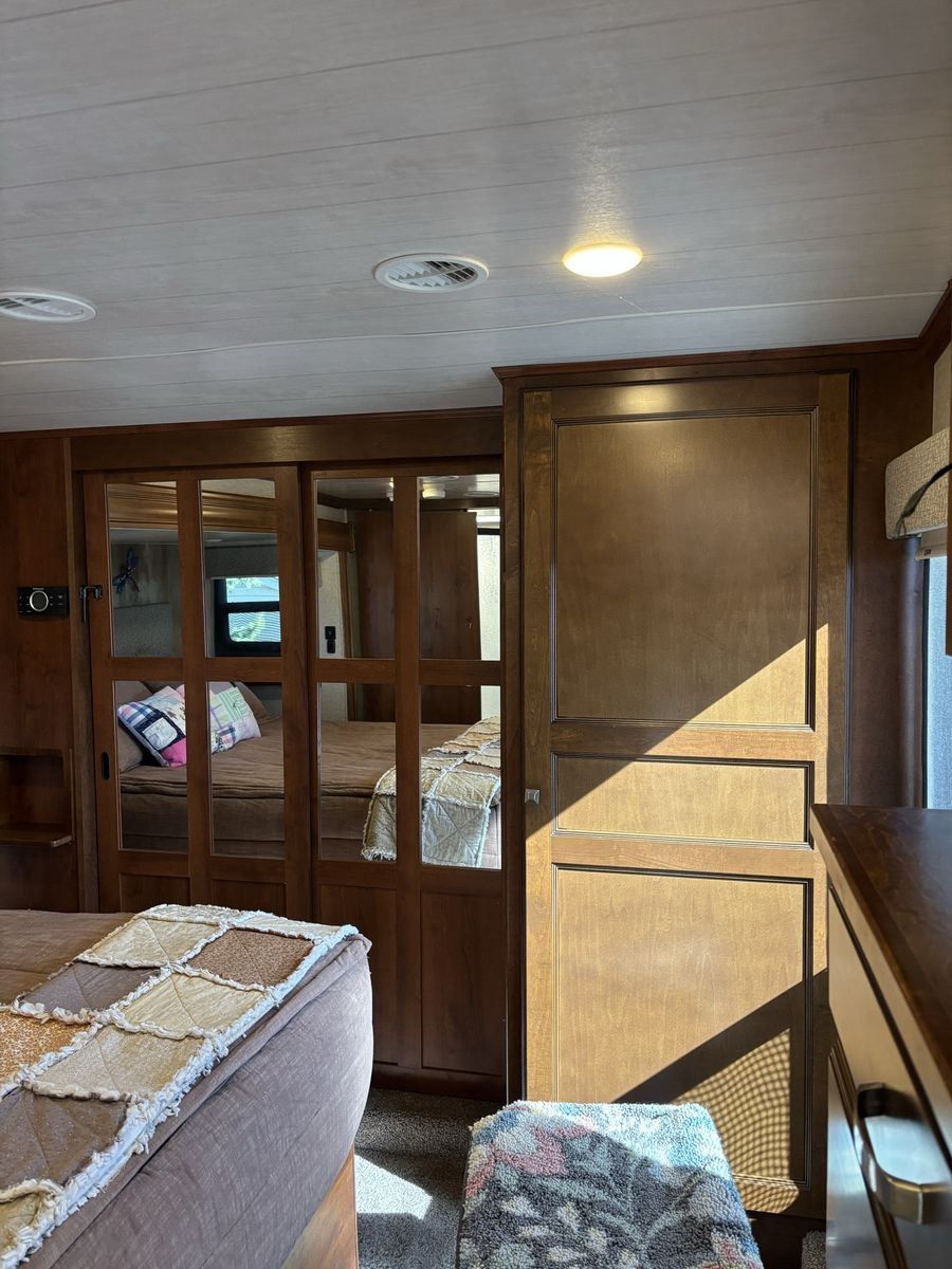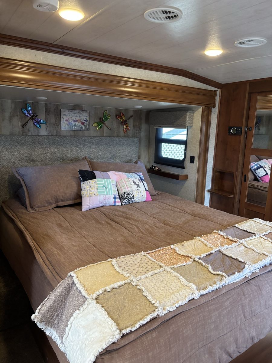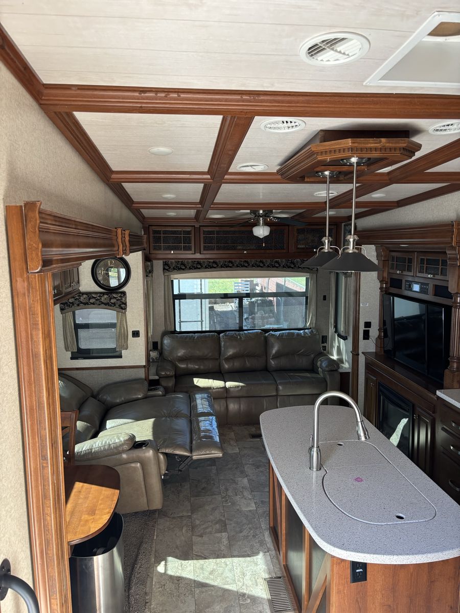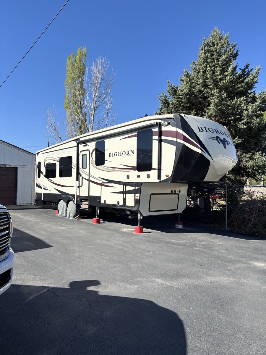 This is a super clean 2017 Big Horn 5th wheel camp trailer. Sleeps 4 queen bed up front and the couch makes into a king. Factory plastic is still on the foot rests of the reclining sofa. This is a must see!