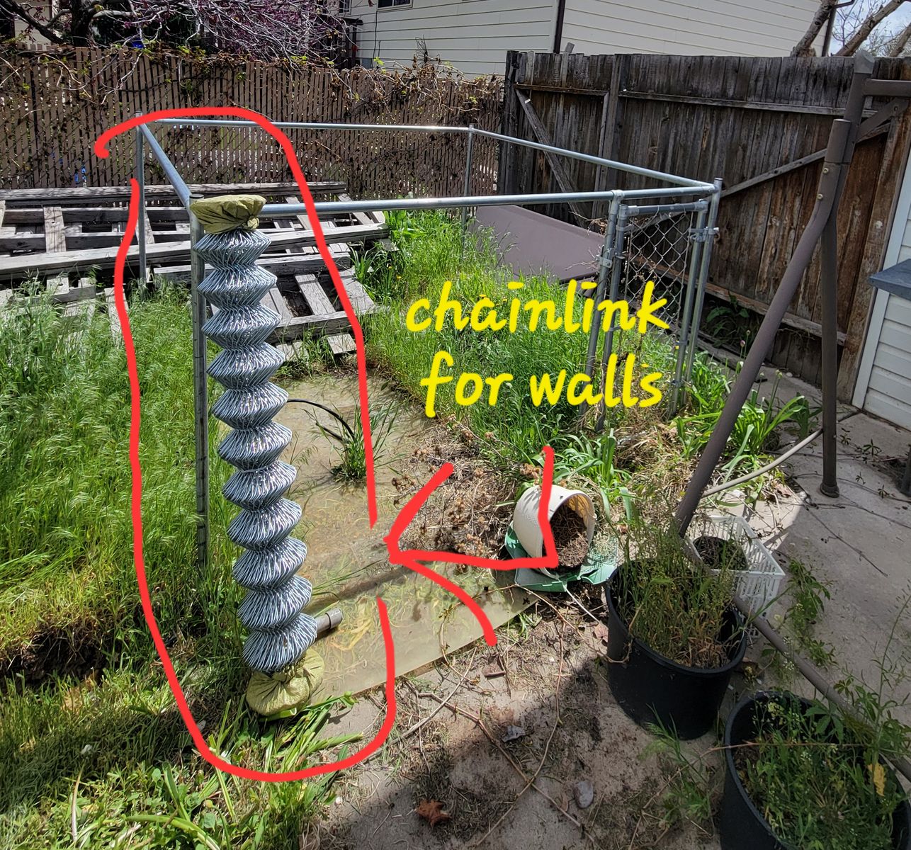 VenmoSquare dog run aprox. 7 ft square and 4 ft tall with chain link wall wrap included. This has been parcialy broken down for easy transport.