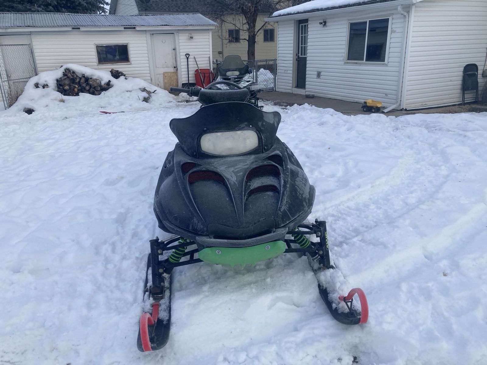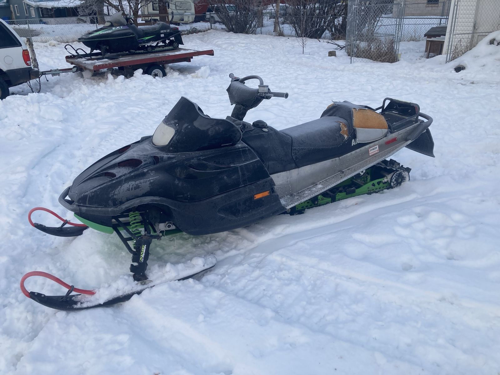 01 mt cat, I have owned this sled for two years. I really like this sled and am not in a hurry to sell. 800.00 fairly firm but might have some wiggle room. Cash only. I know there is a carb or idle issue. Last year I could get it started easy and ran good but would hang onto or even climb the rpm’s. This year it was harder to start and didn’t want to idle But ran flawlessly if you kept the throttle feathered. I had messed with the idle last year to address the hanging upper rpm’s. So it might just need the idle adjusted again. The seat is tore I have taped it for now. And the speedometer is not working but the rpm gauge does. Simmons skis hand warmers work.
