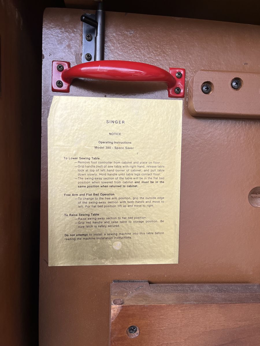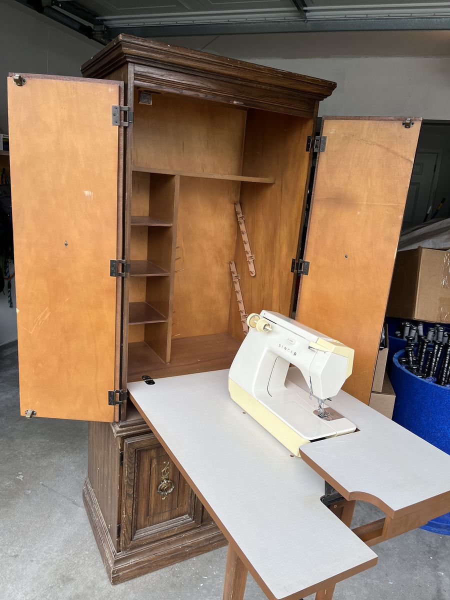 VenmoSinger-Model 380 Space Saver Cabinet/Sweing Machine. Singer Touch-Tronic 2010 Memory Machine, needs a good home for sewing and storing your supplies.