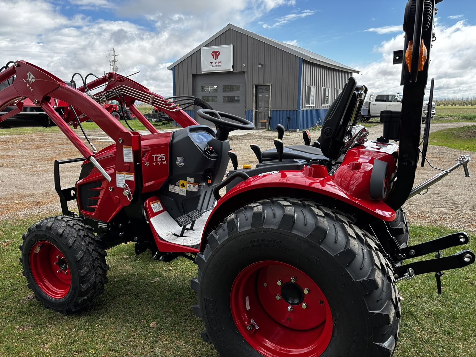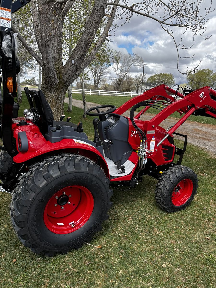 This T25 TYM (branson) tractor loader is the toughest in its class with a loader capacity of 1200 pound - has 4x4 on demand - 540 PTO and category #1 three point hitch - comes with a nice LED light PKG-phone charger and Bluetooth type speakers - HST transmission with 2 Gear ranges 208-390-2774 text work good as always take calls -
