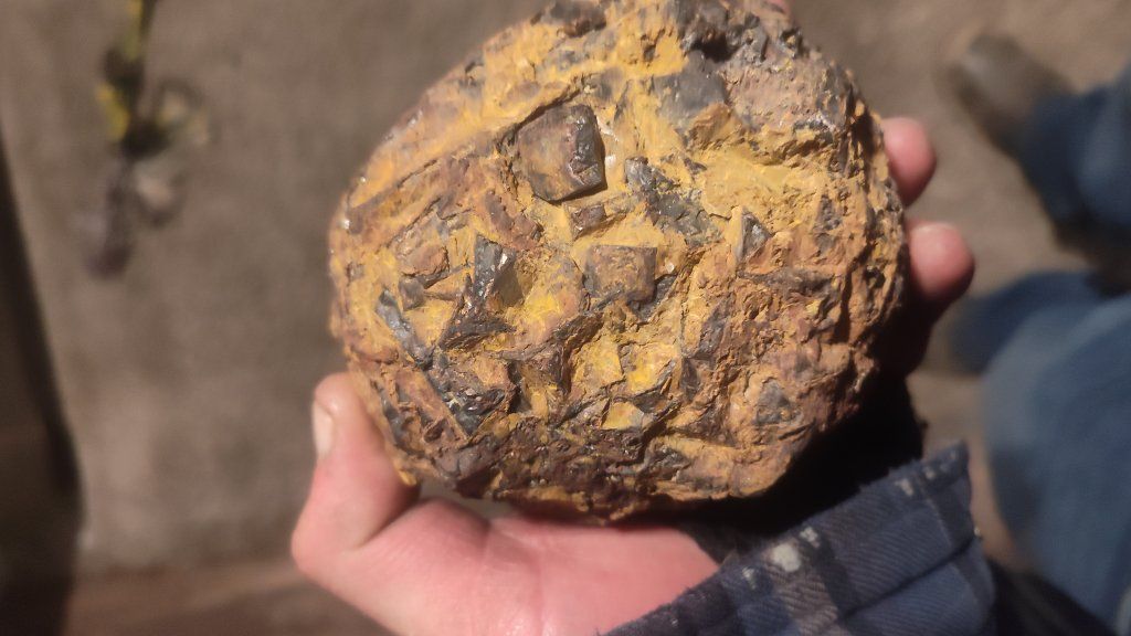 have a 1195gram limonite after pyrite cube cluster it needs to be cleaned up all the clay taken off . $70 obo text only 385-352-6809
