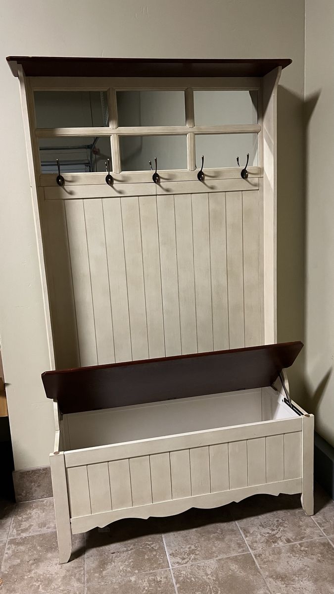 ZelleGood condition hall tree with bench, sturdy and cleaned for next owner. Located in Lehi call or text D 8017160445