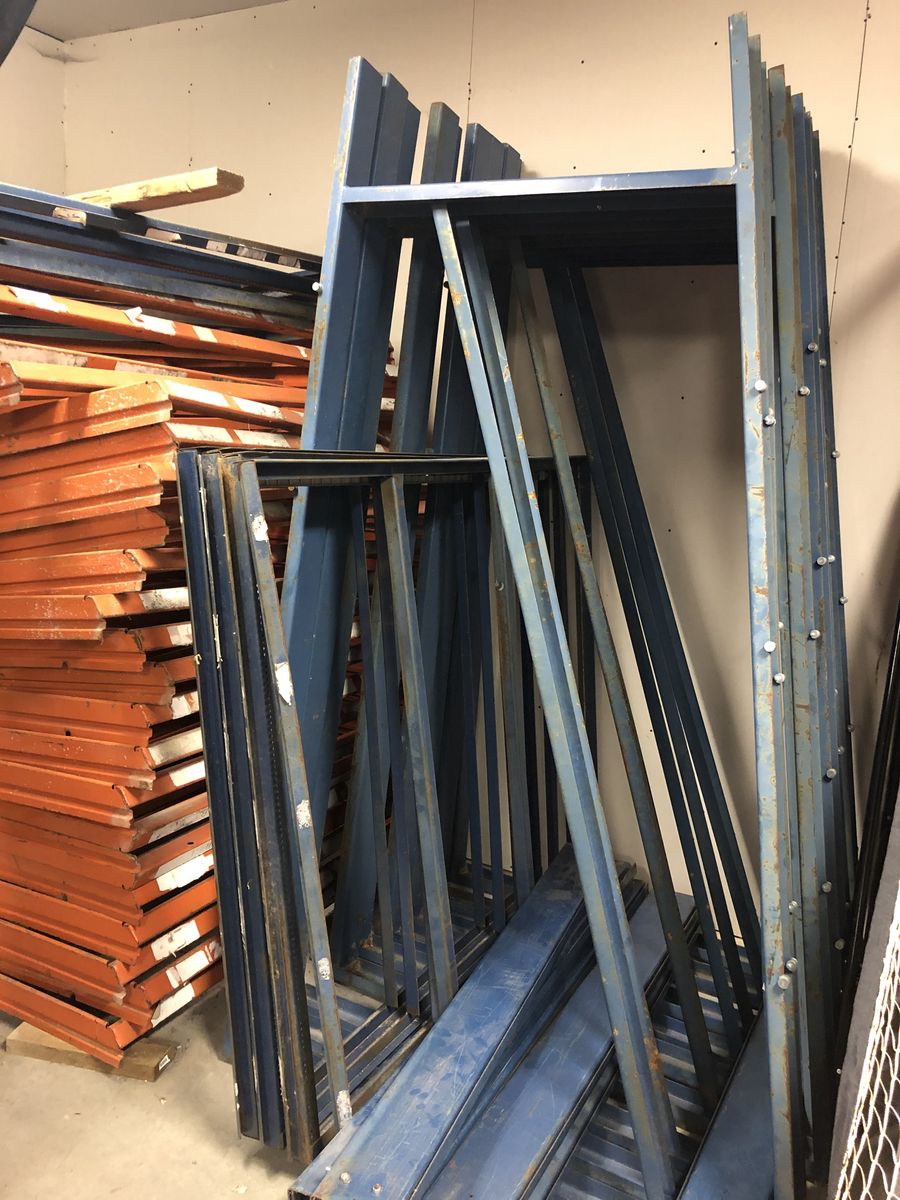 VenmoMetal Flow racking shelves, 9 uprights 8 ft tall, top is 39" wide, bottom is 54" wide, shelves are 5' x 5'. They have been in a warehouse the whole time but we need the space to do other things. Looking for someone that can put these to use again. Open to sale, lease or rent to own.
