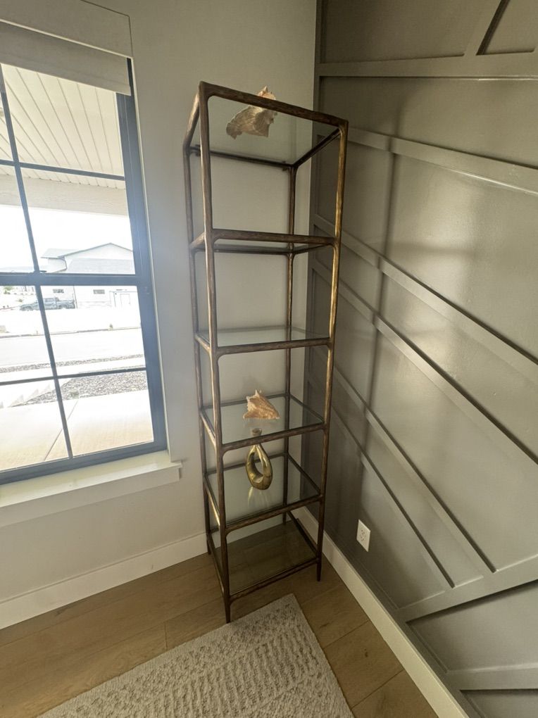 Selling our two RH Thaddeus Narrow Glass Shelving purchased brand new from RH $5,125 each. Priced to sell.