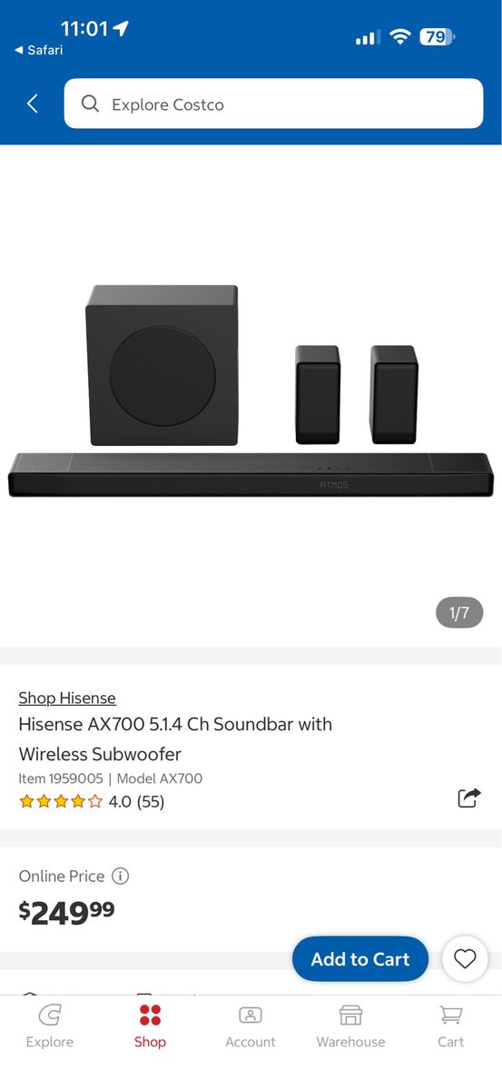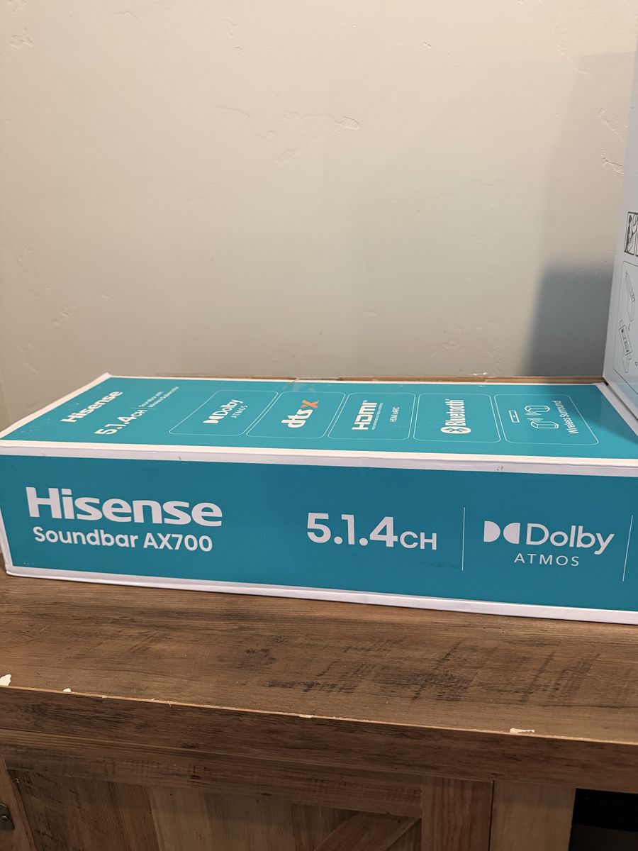ApplePayLike new Awesome Hisense Soundbar AX700 system. Has 5.1.4 channel audio with Dolby Atmos and DTS:X for super immersive sound. Comes with a soundbar, wireless subwoofer, and two wireless surround speakers. It also comes with remote control. Connects with HDMI eARC and Bluetooth. Great for movies and music! Asking 160 it retails for 250 in store located in sandy thanks!