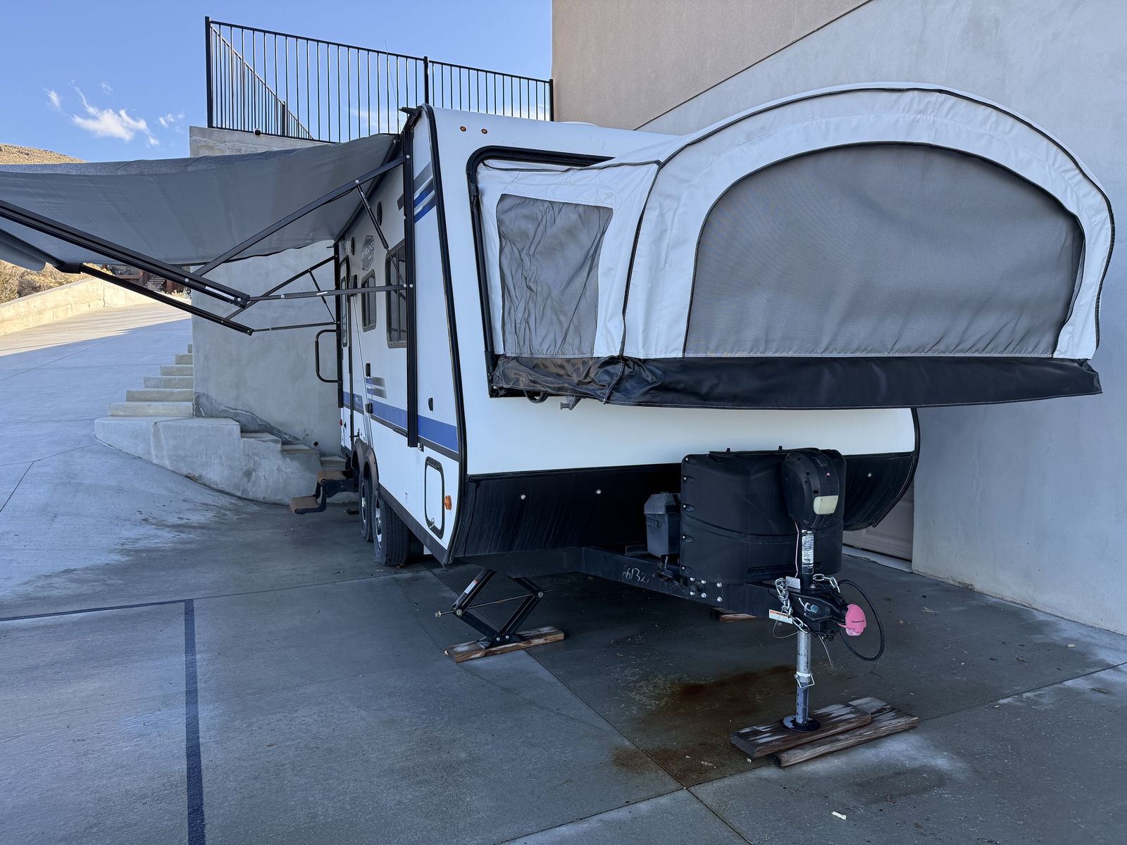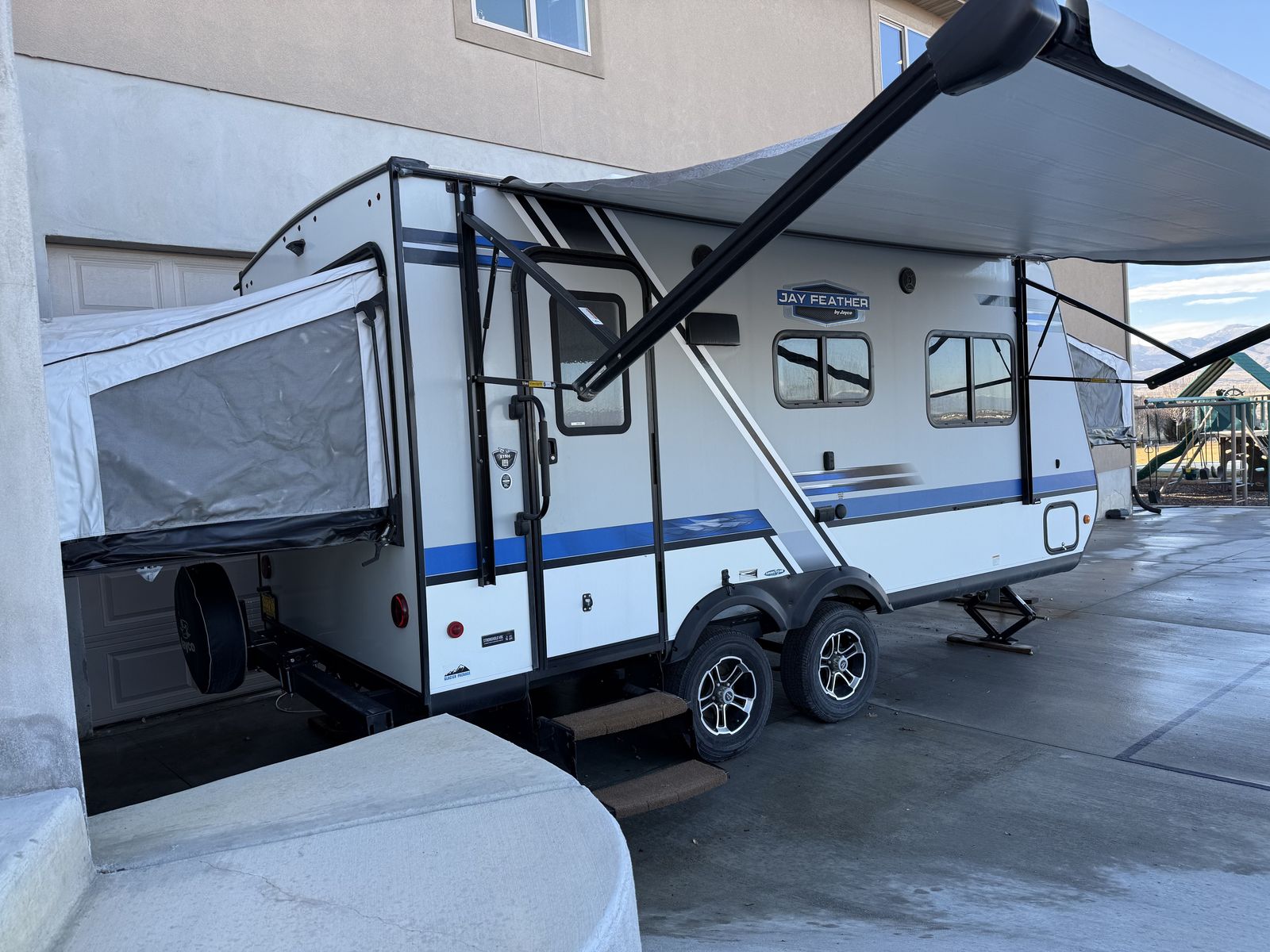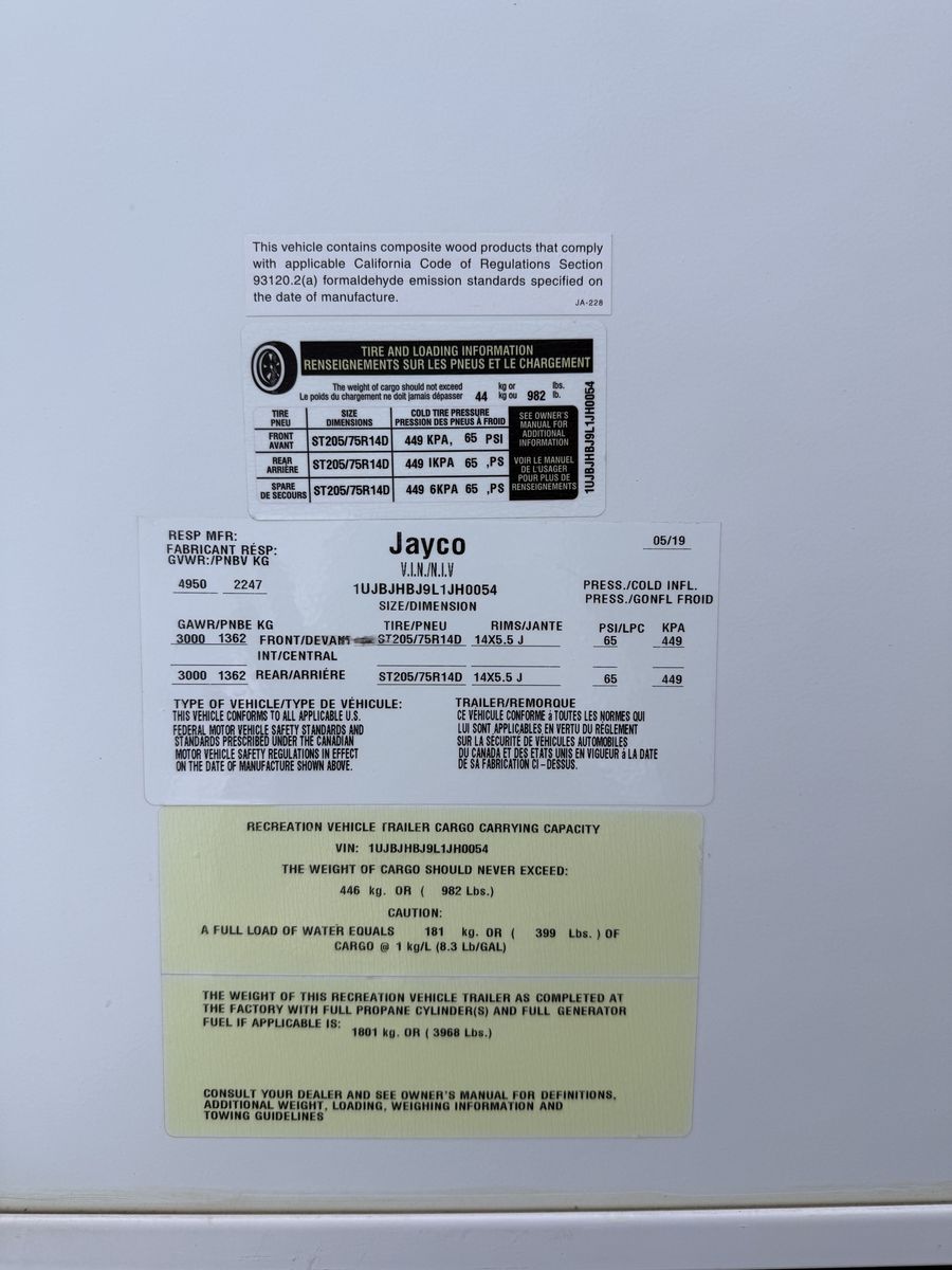 Well-maintained 2020 Jayco X19H hybrid travel trailer ready for your next adventure. Lightweight and easy to tow (just over 20 ft), but surprisingly spacious thanks to the expandable tent beds. Comfortably sleeps up to 8 with two queen beds plus a convertible dinette and couch. Features include a full kitchen (cooktop, fridge, microwave), bathroom with shower, 13,500 BTU A/C, 18,000 BTU furnace, and a 42-gallon fresh water tank for longer stays. Dry weight under 4K. Clean, solid, and ready to camp. Perfect for families or couples wanting more space without towing a large trailer. Message for details or to schedule a showing!