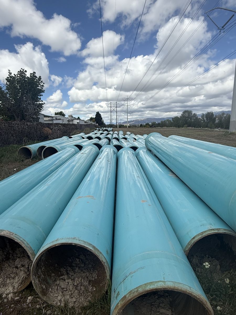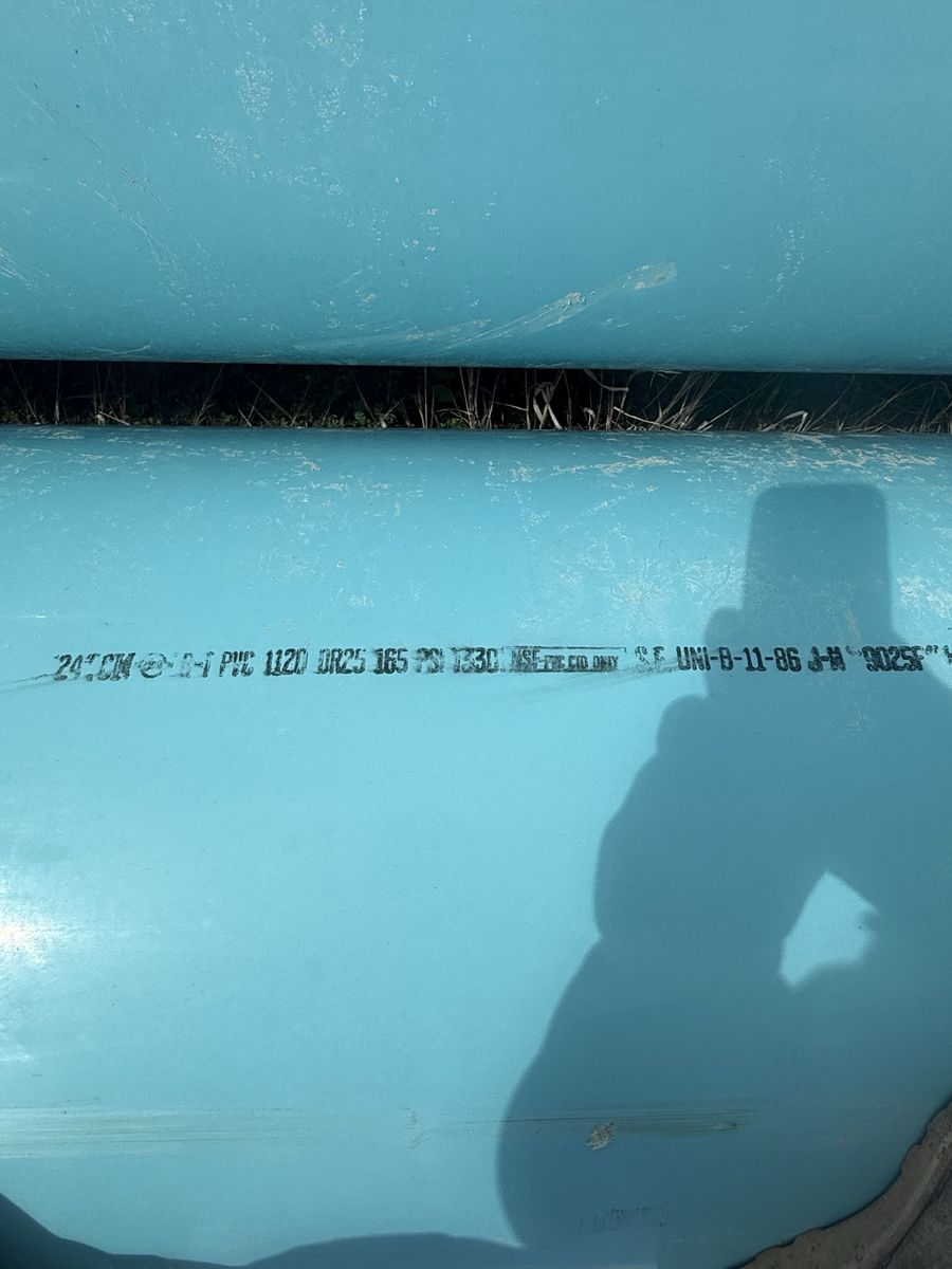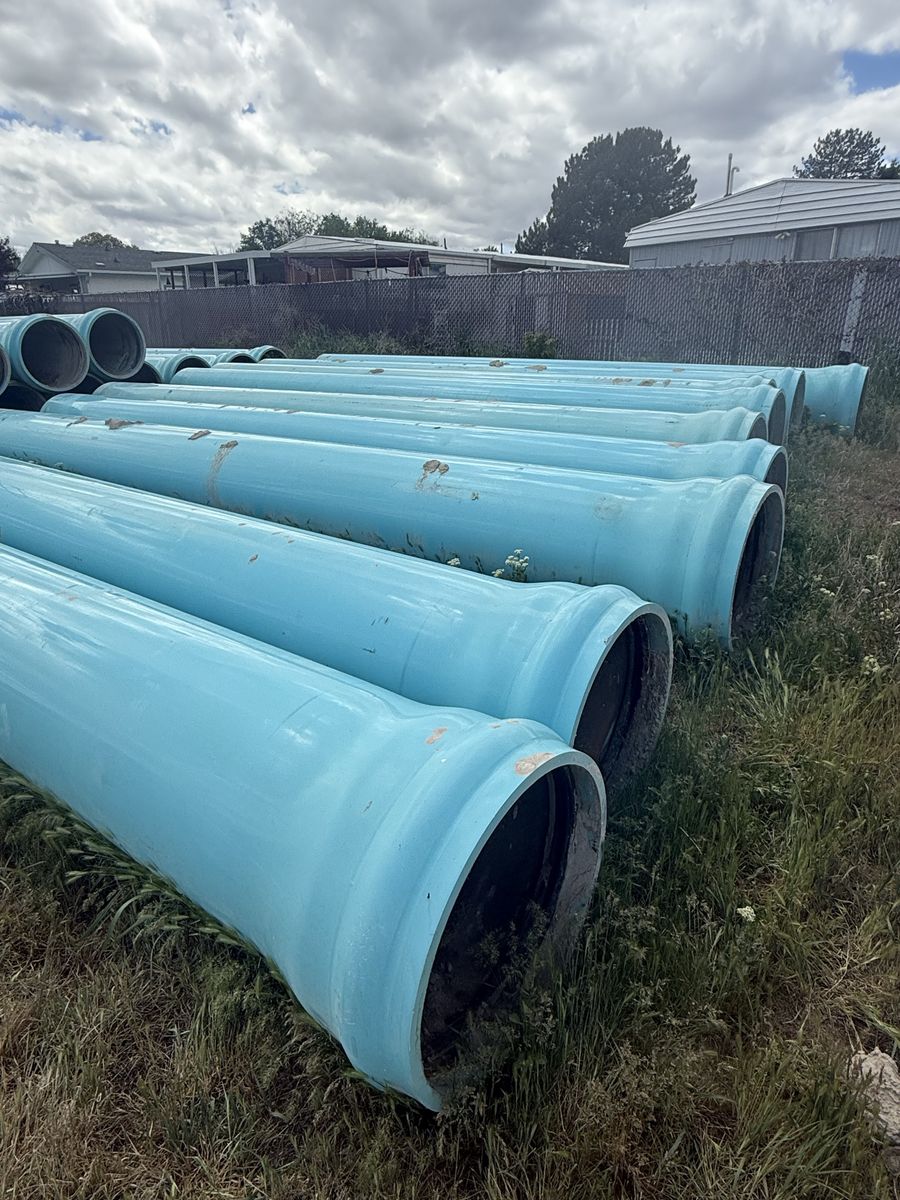 24” blue c900 DR 25 165psi pipe. This pipe was installed brand new with absolutely no sun damage used for drinking water and then later removed approximately 1600 feet available. This pipe is for sale for exactly half the price of brand new. This would be an amazing deal for anyone looking to upgrade an irrigation line.