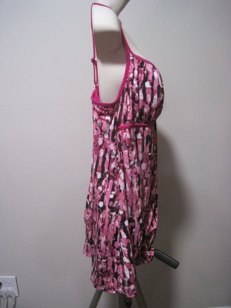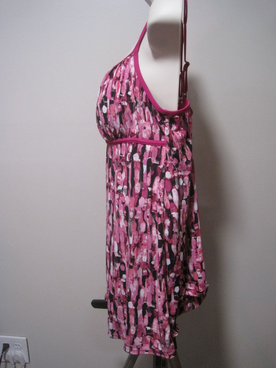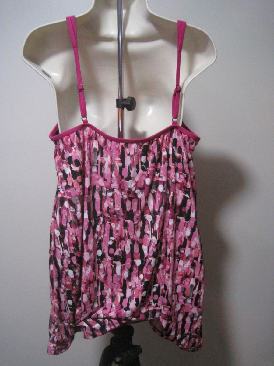 The Catalina Women's Medium Pink Black Abstract Print Sleeveless Spaghetti Swim Dress is a stylish and comfortable swimwear option for women. Made from a blend of polyester, synthetic, nylon, and spandex, this slimming swim dress features a built-in brief, tummy control, adjustable spaghetti straps, and a comfortable fit. The abstract pink and black pattern adds a fun and trendy touch to the classic tank top style, making it a versatile choice for any beach outing or poolside relaxation. Easy to care for with machine washable instructions, this Catalina swim dress is a must-have for any woman's summer wardrobe.