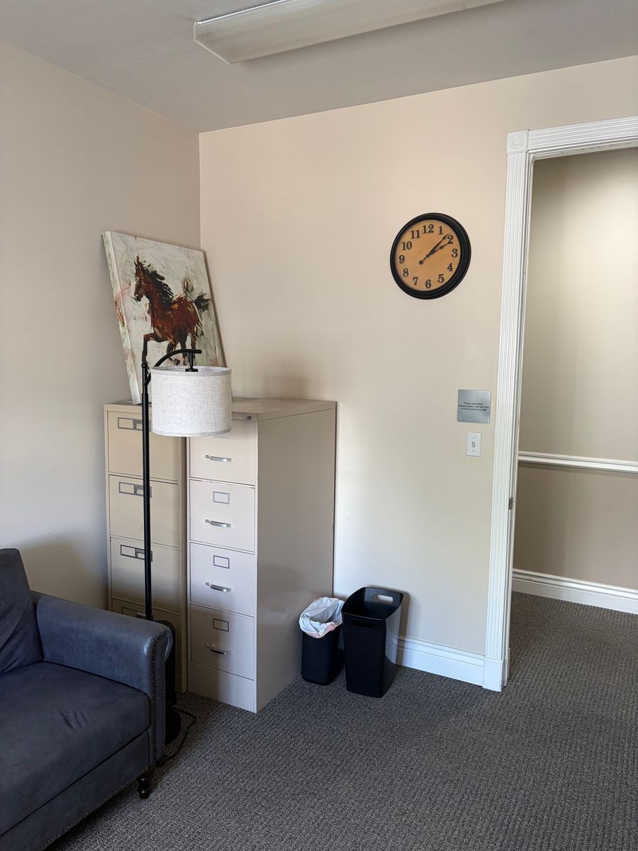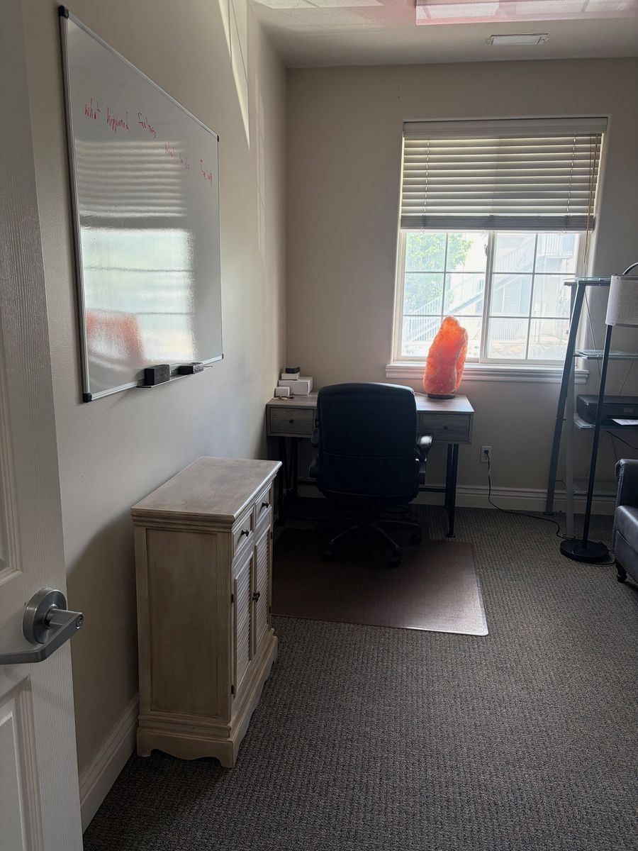 Upstairs private office available in a large, professional office building shared with other established businesses. Ideal for a small business or independent professional. Furniture not included.
