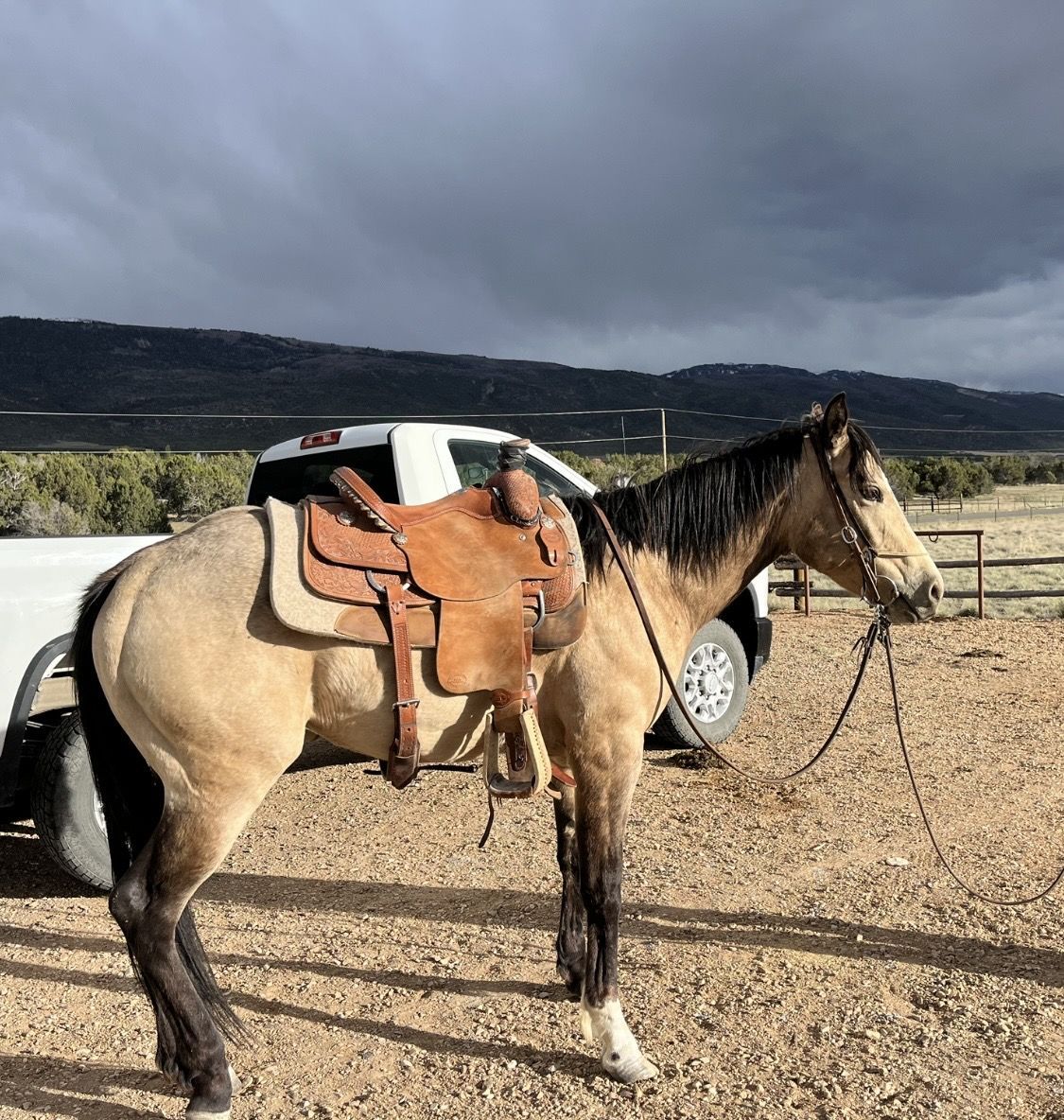 This is Cornbread, he has 30 days on him and ready to go in any direction. I personally think he would excel as a trail/ranch horse, or a pole/barrel horse. He does require an experienced rider as he is still greenbroke. With some time and patience he's gonna make a really nice horse. He's easy to catch as long as the other horses he's with are easy to catch. Loads well in the trailer, I haven't backed him out of a trailer as he's been in stock trailers but will unload walking out. He got his teeth floated and is dewormed. He stands tied. He's also an easy keeper. He is a very athletic horse just needs someone who can put more time into him. Call or text with any questions (801-420-4654). Feel free to come try him out located in spring city.