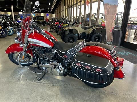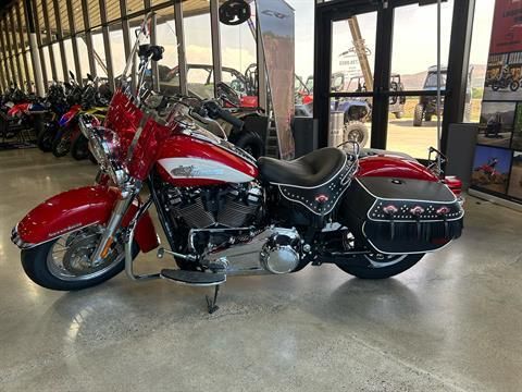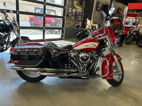 THE 2024 HARLEY DAVIDSON HYDRA GLIDE REVIVAL IS A LIMITED EDITION SOFTAIL. THE BIKE IS CELEBRATING THE 75TH ANNIVERSARY OF THE 1949 HYDRA GLIDE FORK. IT FEATURES A ,ILWAUKEE EIGHT 114 ENGINE, 1956 INSPIRED REDLINE RED/BIRCH WHITE PAINT, AND CUSTOM LEATHER SADDLEBAGS. SWING ON DOWN AND TAKE A LOOK