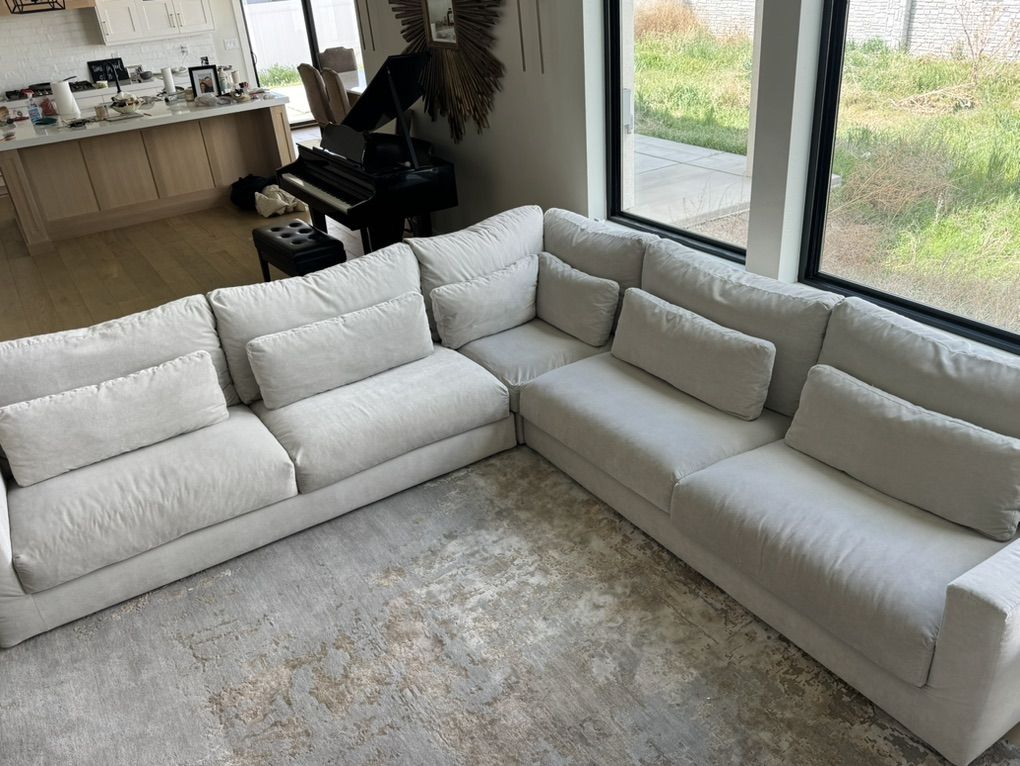 VenmoWe’re selling our RH Lugano 3-Piece down feather lustrous velvet in dove. Excellent sectional in like-new condition recently purchased and priced to sell. Very comfy and elegant couch.