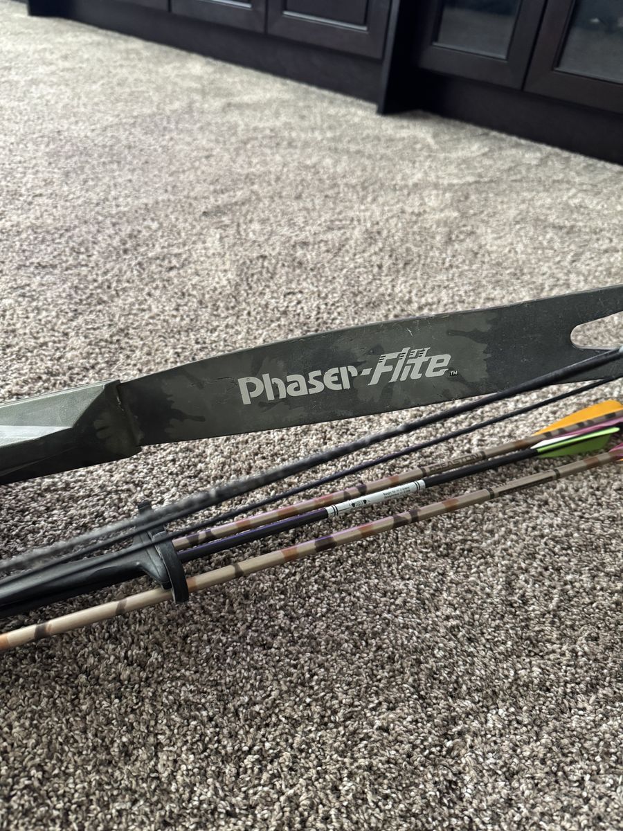 Used PSE Phaser-Flite Compound Bow. Camo finish, draw is 30 and is set for 45-60lbs. Comes with 3 arrows. $150.00 OBO