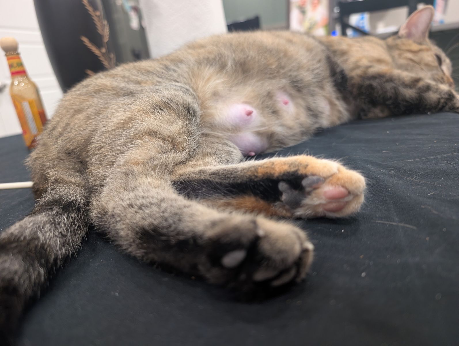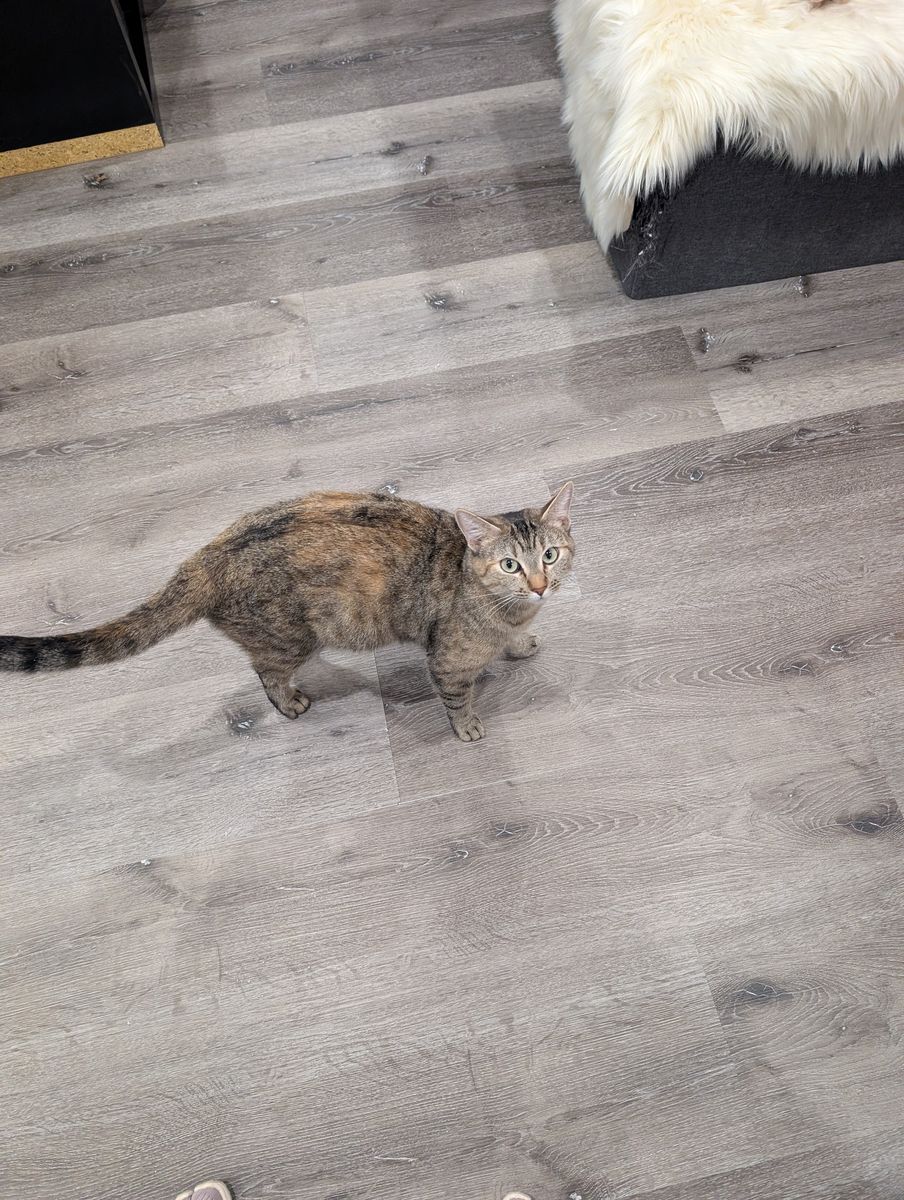 ZelleWe adopted a cat but she is not getting along well with our other cat despite being super loving towards people. She always sits on our lap when we sit down (as long as she's not stalking the other cat) and loves to greet any guests we have over!