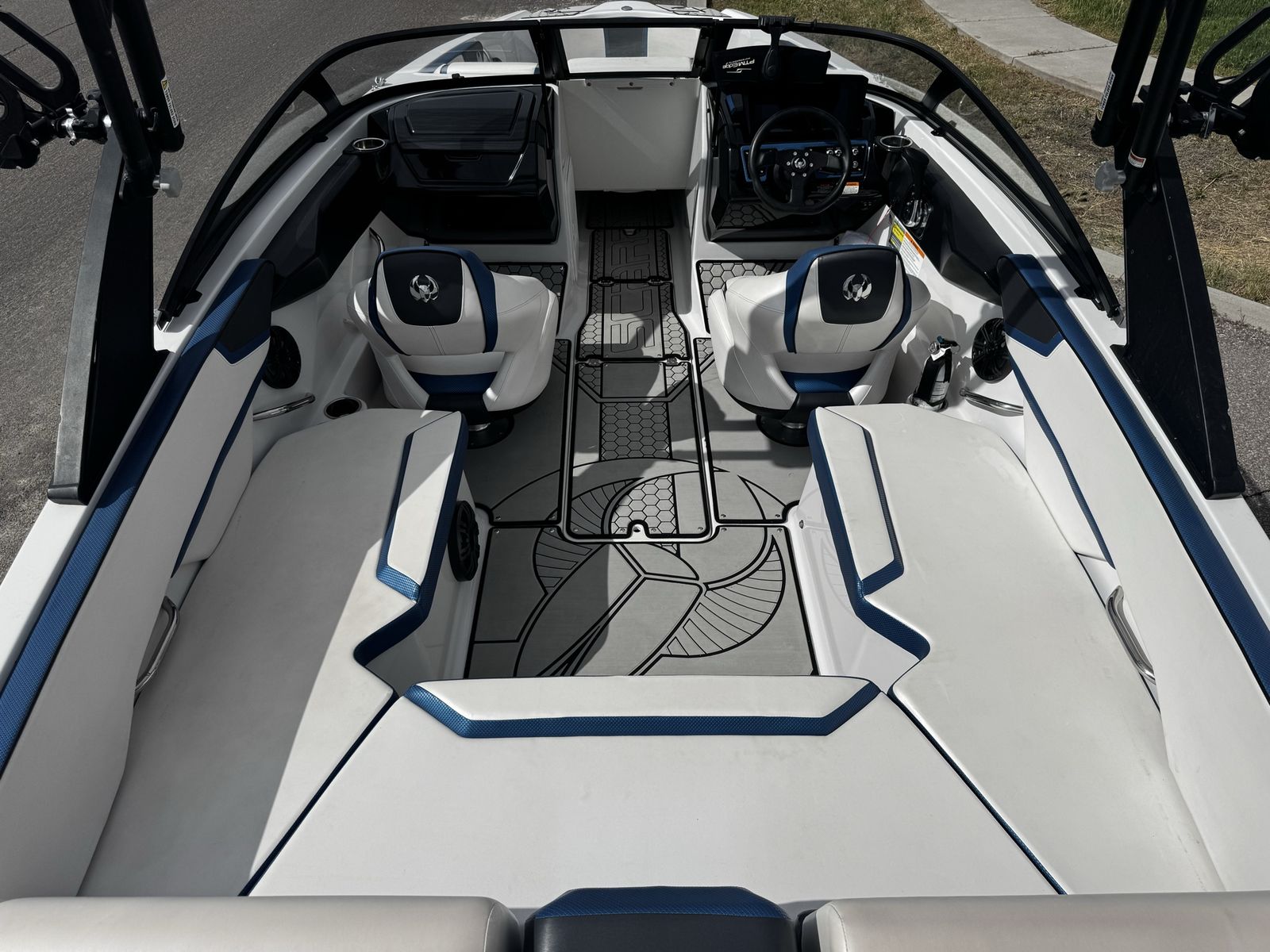 Powered by twin supercharged Rotax engines, it’s incredibly quick, responsive, and easy to drive. The jet drive system makes it very nimble and perfect for both experienced and new boaters.