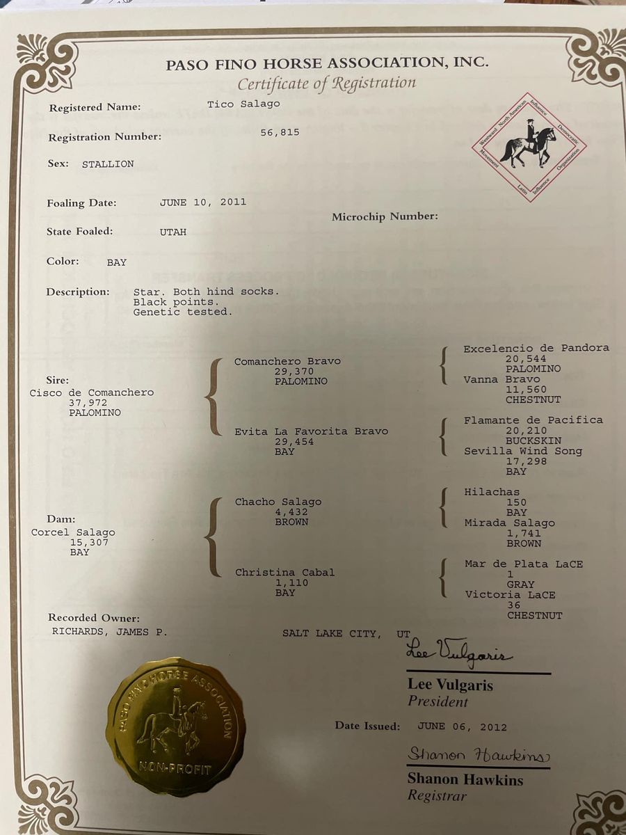 This handsome Paso Fino stallion stands a solid 15.1 hands and offers breeders a rare combination of classic foundation genetics, refined type, and a willing, people-oriented disposition. He is the classic “American Paso Fino” proudly from proven Hilachas, Mar de Plata and old Pure Puerto Rican lines—blood that has produced generations of elegant, functional, and beautiful Paso Finos.