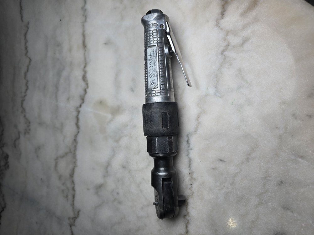 Air Ratchet - 90 PSI Professional Grade Description: Brand: Cornwell Quality Tools Model: IR-C107XP Specs: 90 PSI Max Condition: Sleek silver and black finish. Features a comfortable grip and adjustable exhaust. High-quality pneumatic tool for fast assembly/disassembly.