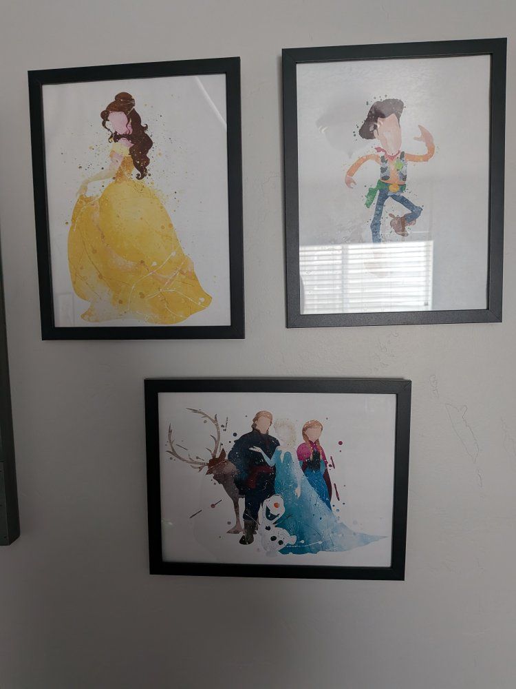 Venmo14 copied pictures in black frames. Used to decorate playroom. Great Price for 14 pictures with frames!