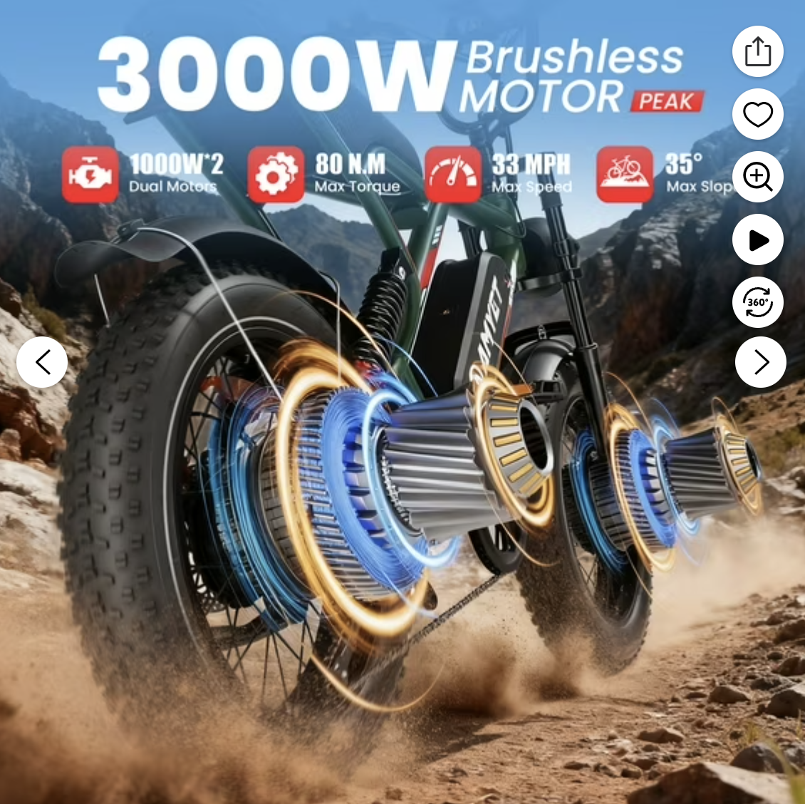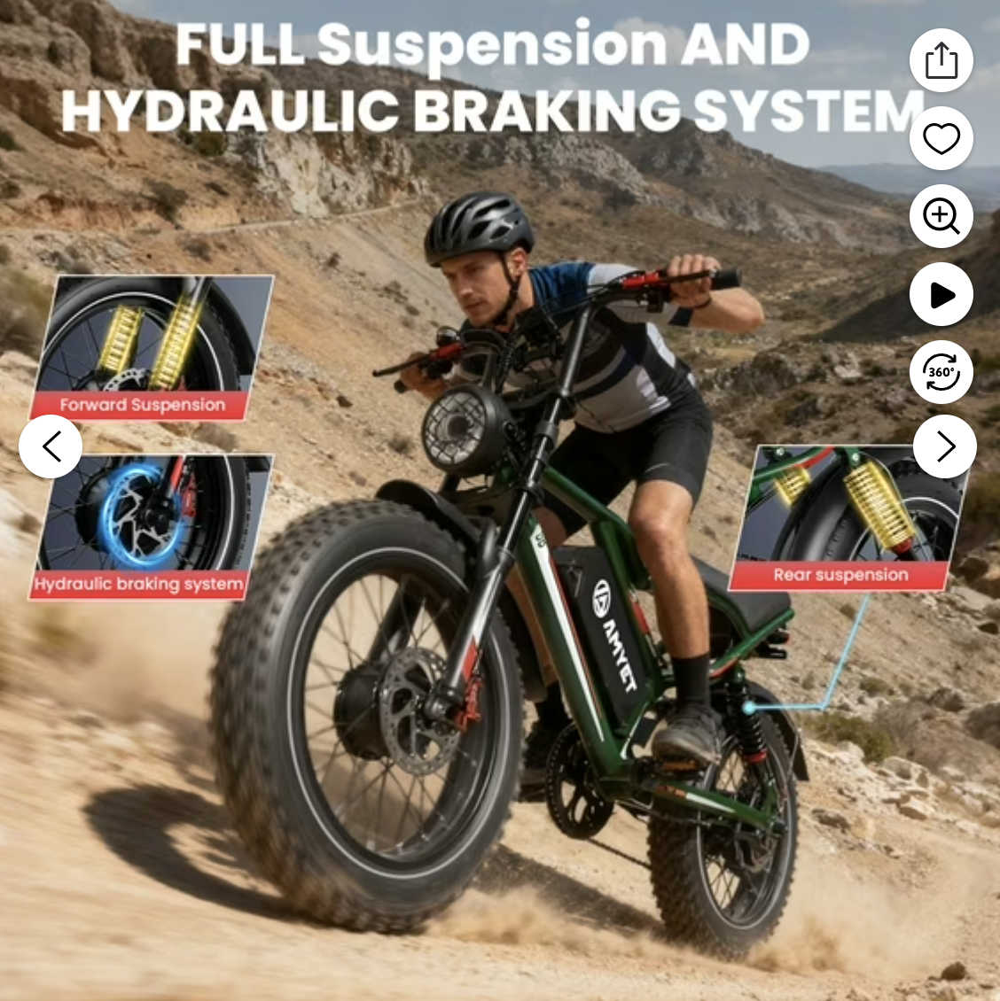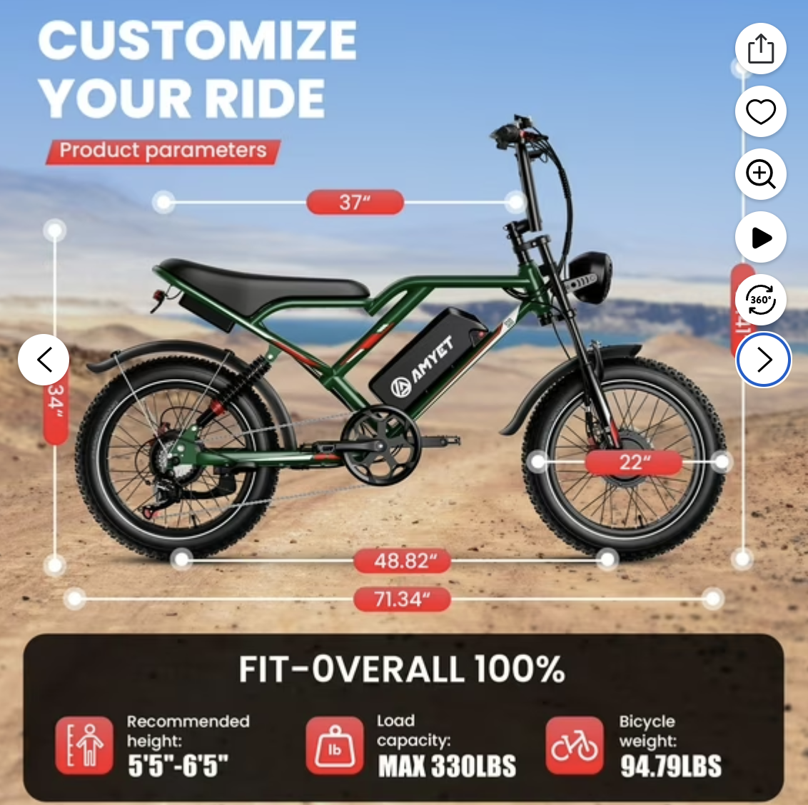 VenmoNew in box, AMYET S8 3000W peak dual motor AWD electric bike. Supports adult riders between 5'5" and 6'5" with a maximum load capacity of 330 lbs.
