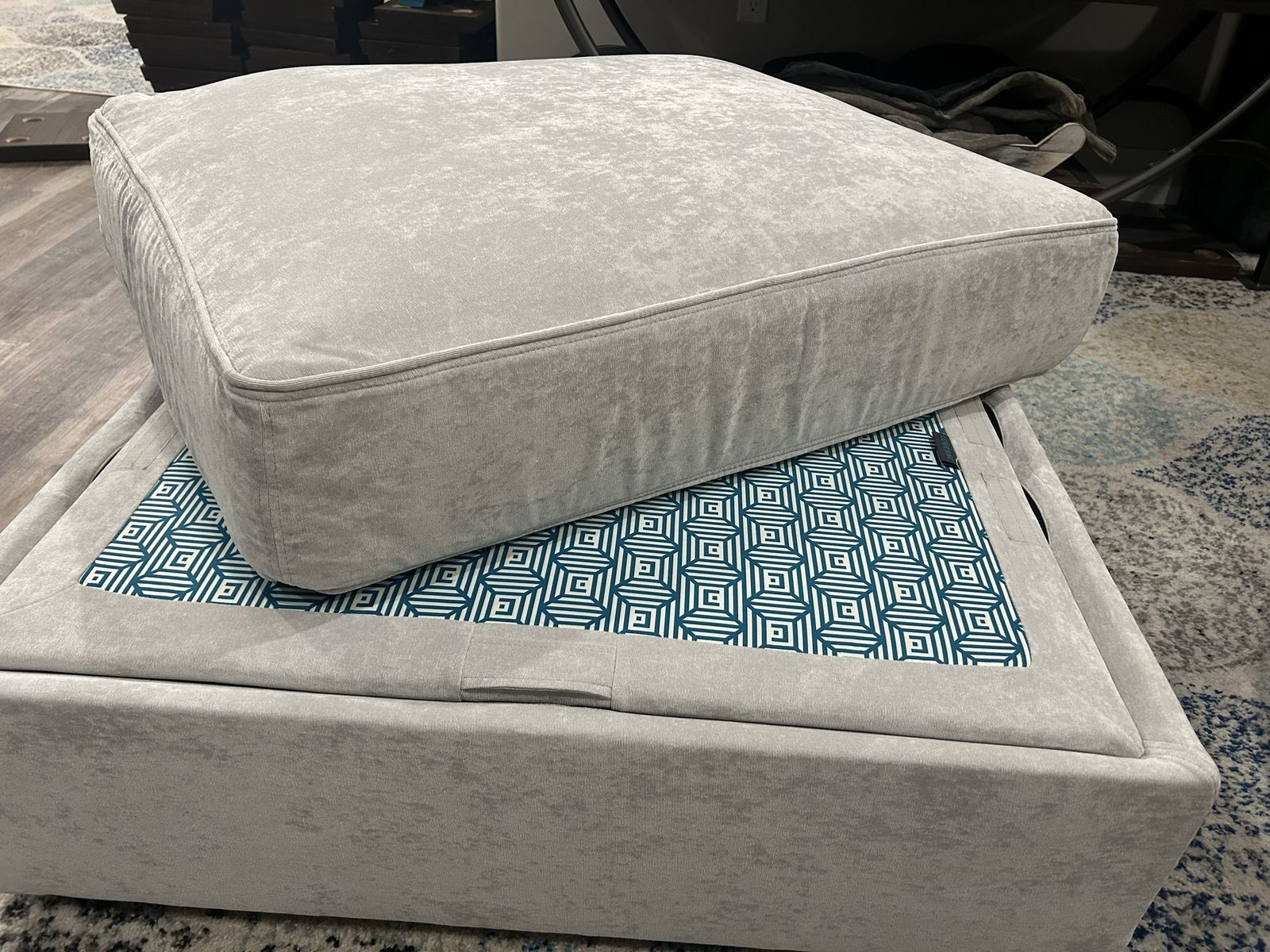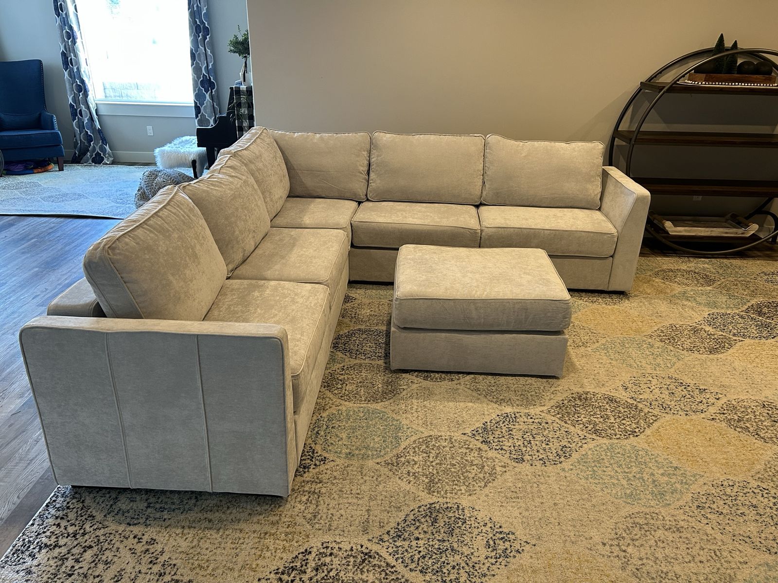 ApplePayLoveSac Corner Sectional with Storage Ottoman in Sky Grey Corded Velvet Used for just a few months Clean, like new condition
