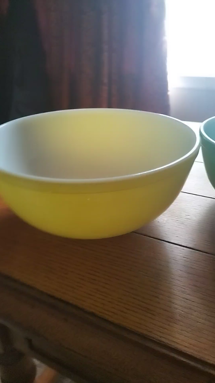 This vintage set of 2 made in USA Pyrex Nesting Bowls yellow, and turquoise, with a FREE white one for this set, are a classic addition to any kitchen, or a collectable with a amazing quality no longer made Made in America in the mid-century 1950's modern style, these round, glossy bowls are stackable for easy storage. The set includes bowls in sizes either 401, 402, 403, or 404, I don't know which is which, sorry, Made of durable glass with an impressed backstamp. Retro design and original vintage appeal, these mixing bowls are perfect for all occasions and can be hand washed for maintenance. Do show some light use. They are 8% years old!! White Vaseline Bowl also from the 50's included in the deal